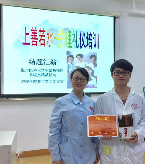 每到秋季迎接新生,她不管自己教学任务有多重,都会走访寝室,关心每位学生的到来,与家长见面,介绍学校周围环境,让他们消除陌生感,如遇生活有困难的学生,则慷慨解囊提供帮助。她借助班会开展系列急救救护培训、护士礼仪训练,教会学生止血法、包扎等急救技能,于润物细无声中,端正学生的学习态度,提高他们的学习兴趣;“身教重于言教,榜样的力量是无穷的”,她播放讲解优秀护士事迹的视频,事事身先示范,严格要求,培养提升学生的职业修养。