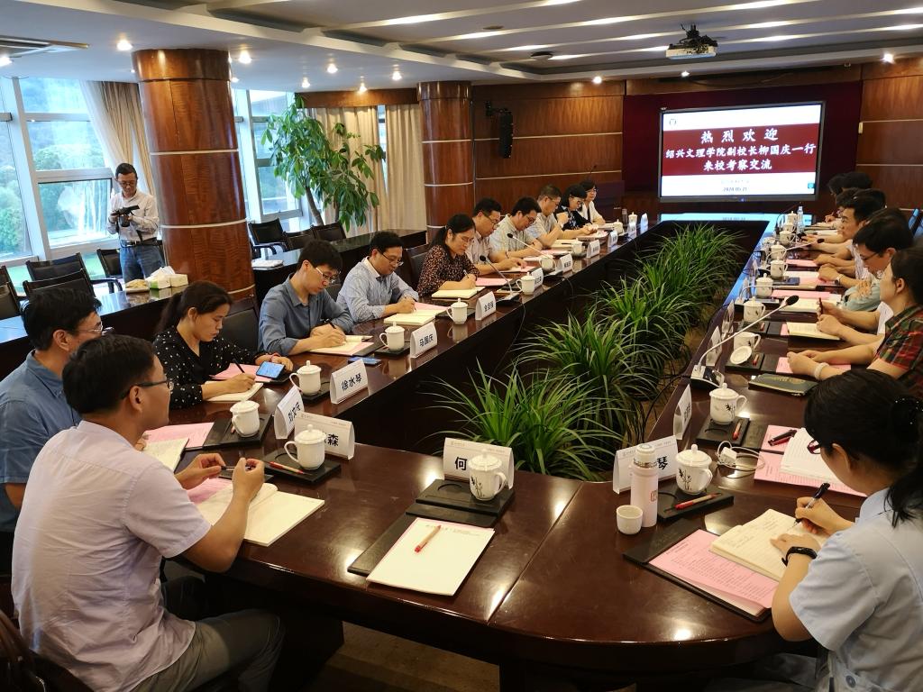 5月21日下午,绍兴文理学院副校长柳国庆一行12人来校访问。我校副校长曹建明、教务处处长朱雪波、教师发展中心(教育督导与教学评估中心)主任陈永霖及快猫 领导班子成员、相关科室负责人等,在同心楼四楼会议室与客人们进行了座谈交流。