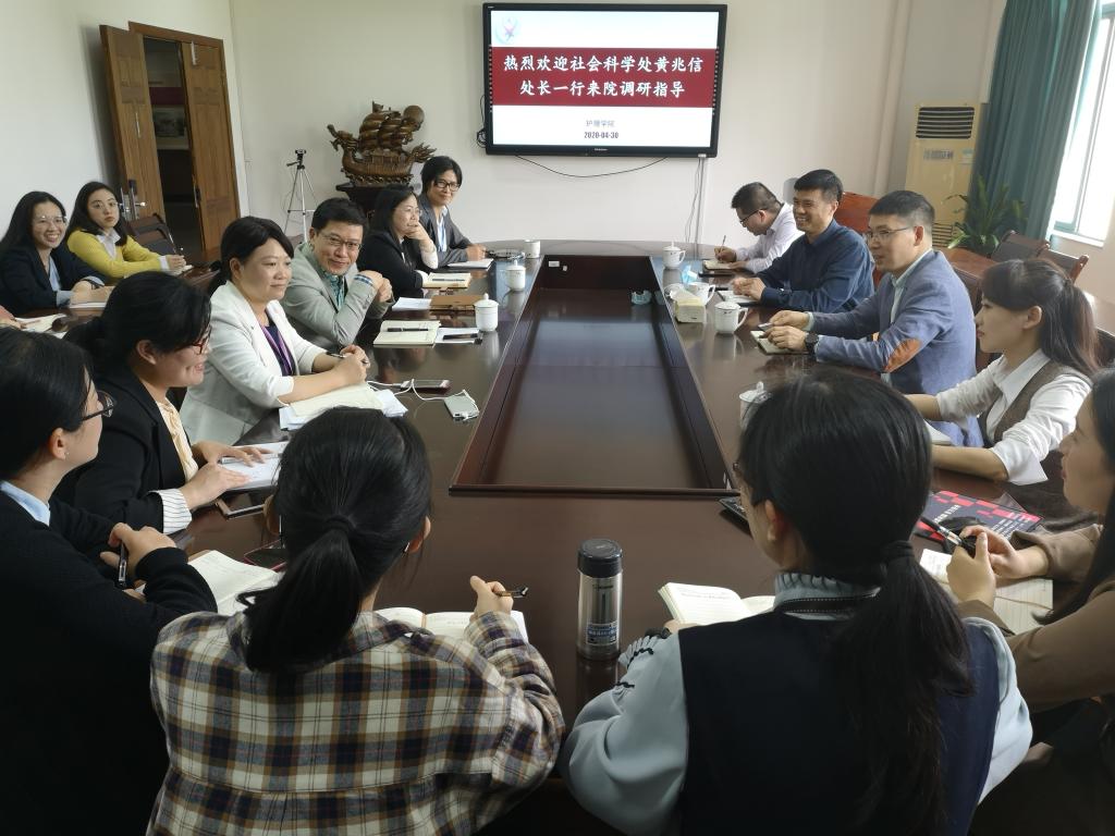 4月30日下午,校社会科学处处长、创新创业教育学院院长黄兆信、副院长俞林伟等一行4人来快猫 调研。学院领导班子成员、青年教师代表与会,会议由学院党委书记李旭东主持。