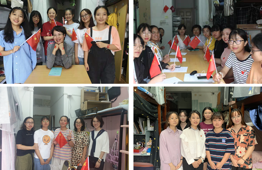 学院党委陈慧书记、涂艳玲副书记等都前往自己联系的寝室,给同学们讲述了几十年来人民生活条件的变化,勉励大家将国家的变化、成就与自己的职业发展、理想、目标结合起来,做有理想、有爱国之心、有挑担的能力、积极向上的人,并与大家齐唱国歌祝福祖国生日快乐。