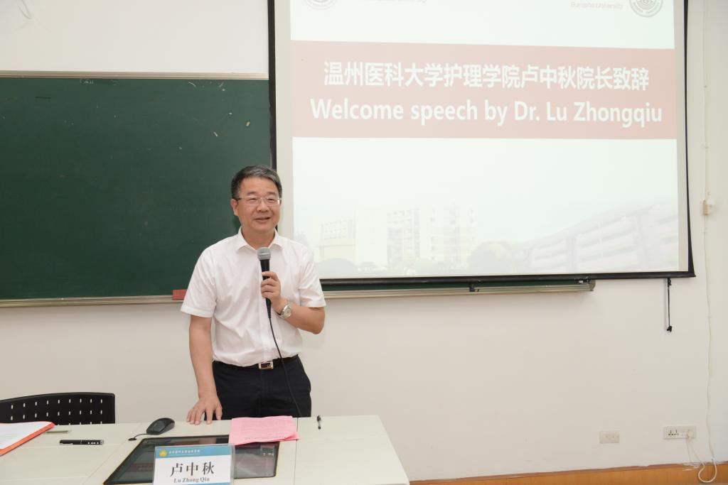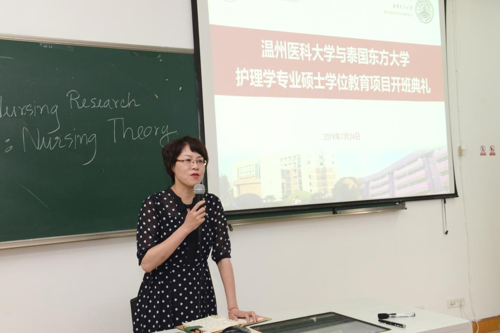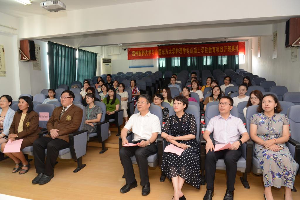 7月24日,快猫 与泰国东方大学合作举办的护理学专业硕士学位教育项目开班典礼在快猫 学术报告厅举行。泰国东方大学快猫 院长Pornchai Juallamate博士、泰方项目负责人Chintana Wacharasin博士,快猫 院长卢中秋、党委书记陈慧、副院长蔡福满、副院长杨晔琴,各教研室负责人及首届26名学生等参加开班典礼。