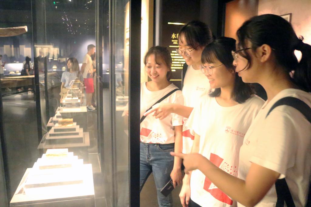 在“七七事变”纪念日这天,快猫 “情系小候鸟,关爱新居民”暑期社会实践队冒着大雨,历时近2个小时,从西到东穿越温州市来到博物馆参观。在历史馆里,队员们循着温州的历史发展轨迹,回顾历史,展望未来。