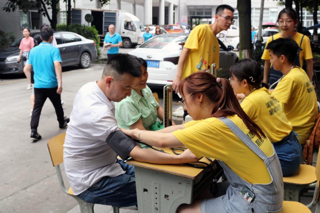 下午17时,快猫 “情系小候鸟,关爱新居民”社会实践队面向康奈职工的义诊活动正式开始。队员通过悬挂横幅吸引往来职工,发放宣传手册、解暑药品、急救包,并通过口头讲解等方式向到来的职工宣传健康常识以及急救技巧,还提供健康常识以及急救技巧。义诊服务受到广大职工热烈欢迎,小朋友们也积极参加。志愿者们尽职尽责,针对不同情况,耐心叮嘱职工各种日常注意事项。职工在接受义诊后开心地说:“虽然只是几个简单的检查,做完之后感觉放心多了。”