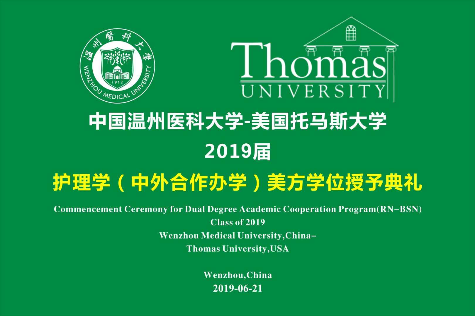——美国托马斯大学2019届护理学(中外合作办学)美方学位授予典礼在旭光厅隆重举行。快猫