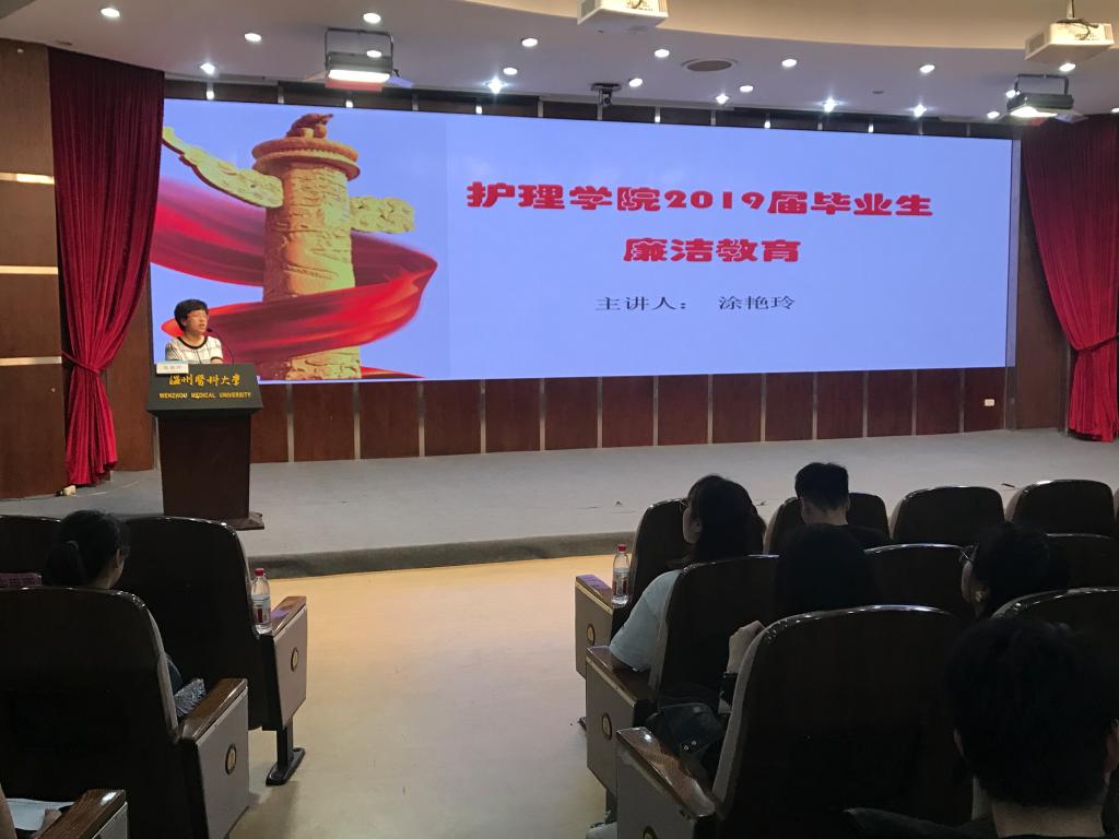 为弘扬廉洁文化,引导毕业生牢固树立爱岗敬业、廉洁自律的职业观念,5月27日下午1:30,快猫 在旭光厅开展2019届毕业生离校前“最后一课”——廉洁教育课。学院党委副书记、纪委书记涂艳玲为507名毕业生作专题教育。