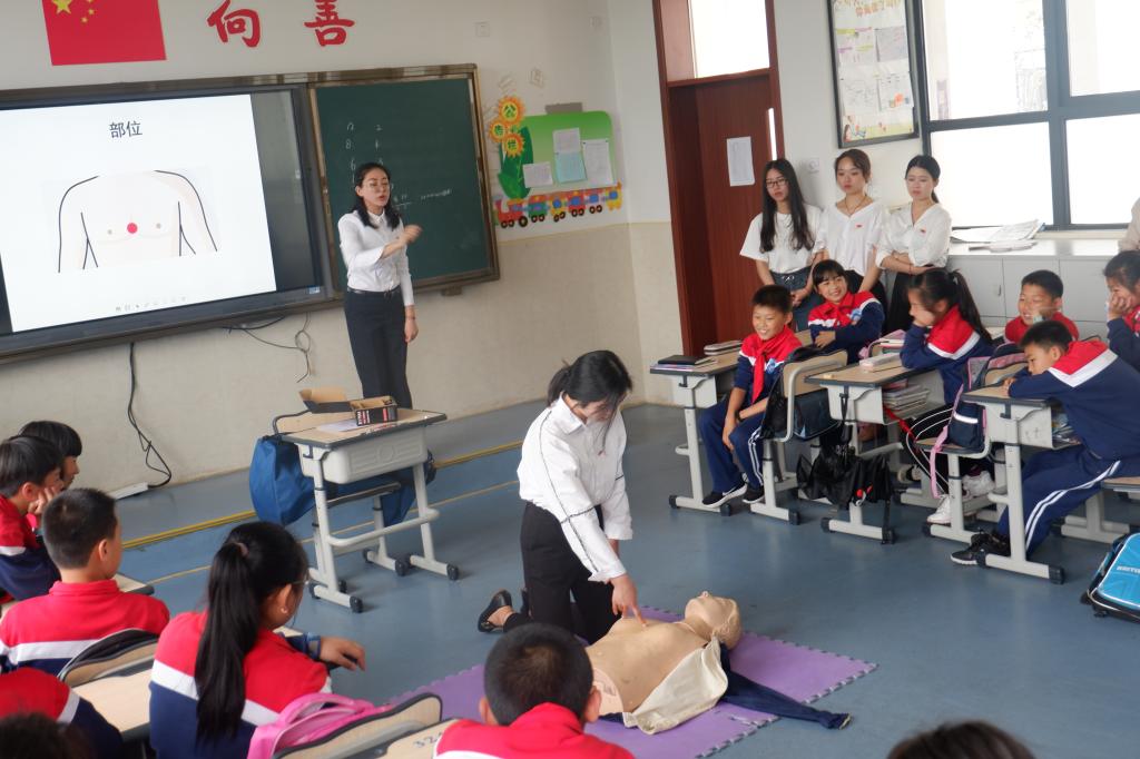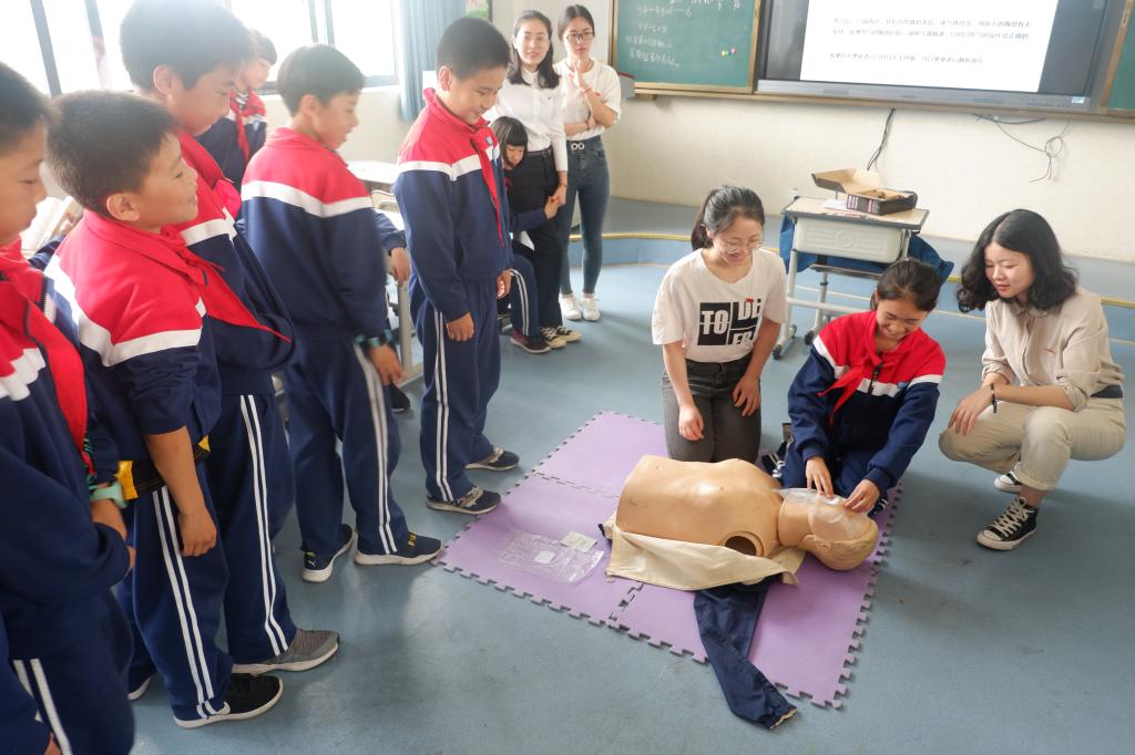 5月15日下午,快猫 研究生党支部在温州大学附属茶山实验小学开展主题党日活动,教授35名五年级小学生心肺复苏等急救知识。