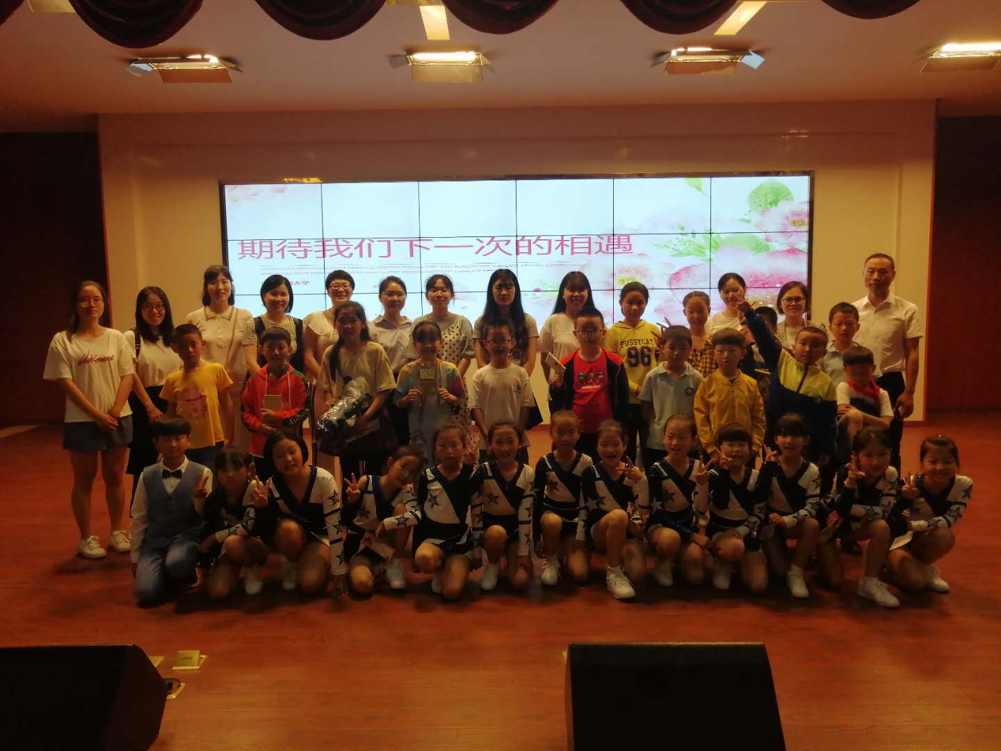 闭幕式现场,双方还共同表演了精心准备的文艺节目。小老师们朗诵了《青春的诗》,这首诗文承载着志愿者们对青春时代的留念与感慨、对孩子们的殷切期望,朗诵的每一句诗词都显得那么真实亲切。瑶溪六小的孩子们则带来了活力四射的啦啦操,活蹦乱跳的他们将“童年”二字展示的淋漓尽致,尽显阳光与活力。