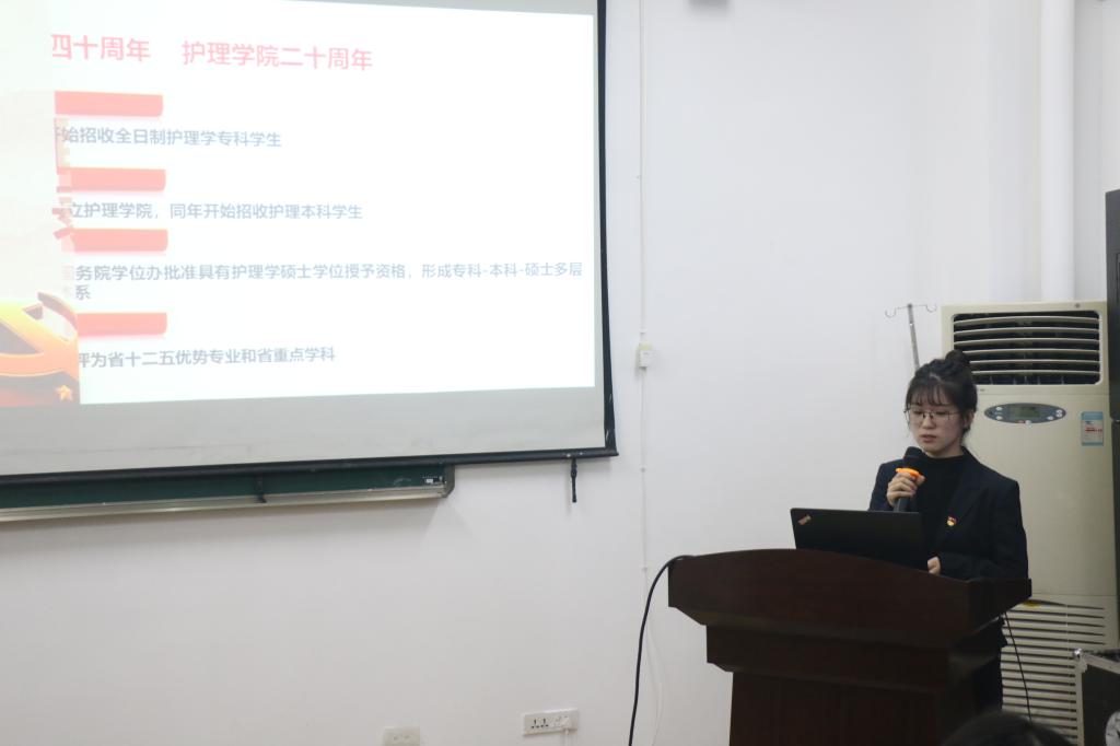选手们的微党课各具特色,大家用热情真挚的语言再现了改革开放四十年来的人民生活、医疗事业发生的巨大变化,诉说身边党员爱国奋斗、建功立业的温医大护理人的故事。有在万米高空救人,医者仁心的卢中秋院长;有在动车站跪地二十分钟实施急救的林碎钗护士长;有无私奉献积极开展各类志愿服务的优秀学子,一个个鲜活生动的故事,无不彰显着新时代护理人的责任与担当。