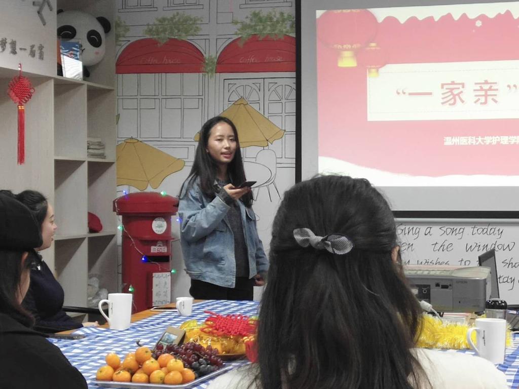 火红的中国结、“福”字还有各色彩灯流光溢彩,在浓浓的年味儿里,同学们分享了各自在校的学习和生活。来自西藏的强珍、达瓦央宗、谢甲可英原本就来自同一所高中,大家又不约而同地报考了同一所大学,这样美丽的缘分让她们格外欣喜,也分外珍惜。来自新疆库尔勒的严雪婷笑说在大学里各方面都挺适应的,但是温州没有暖气又较为湿冷的冬天还是让她有点“压力”。谈到兴头,来自西藏的白央用藏语清唱了一曲《喜欢你》,也让现场气氛不断升温。