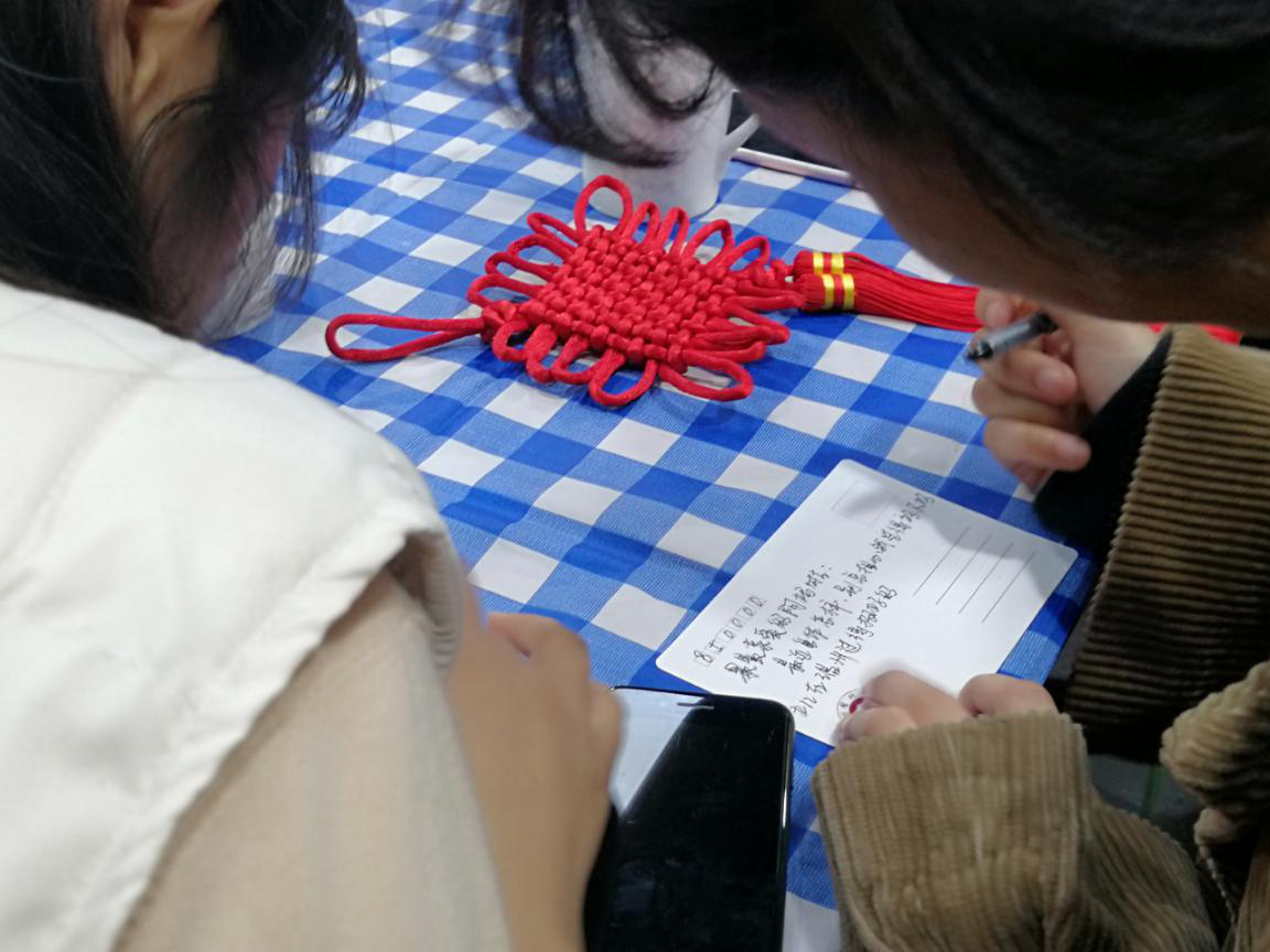 活动的最后,来自西藏的达瓦说:“今天是入学来最平凡不过的一天,但也是最特别的一天。由快猫 各位老师、班助小姐姐、还有各位护心工作室的小伙伴们特别为我们准备的一场暖心活动。很多环节都让我很感动,家人的问候视频、给远在家乡的亲人写明信片,还有用藏语、汉语、维吾尔语写的爱我中华的对联。还有很多很多令人感动的细节,不知道该如何表达…总之谢谢各位,谢谢各位老师在活动时给予的支持和鼓励,谢谢学院赠送的暖心小礼物。总之很感谢,让我们在压力巨大的期末月上感到很暖心。”