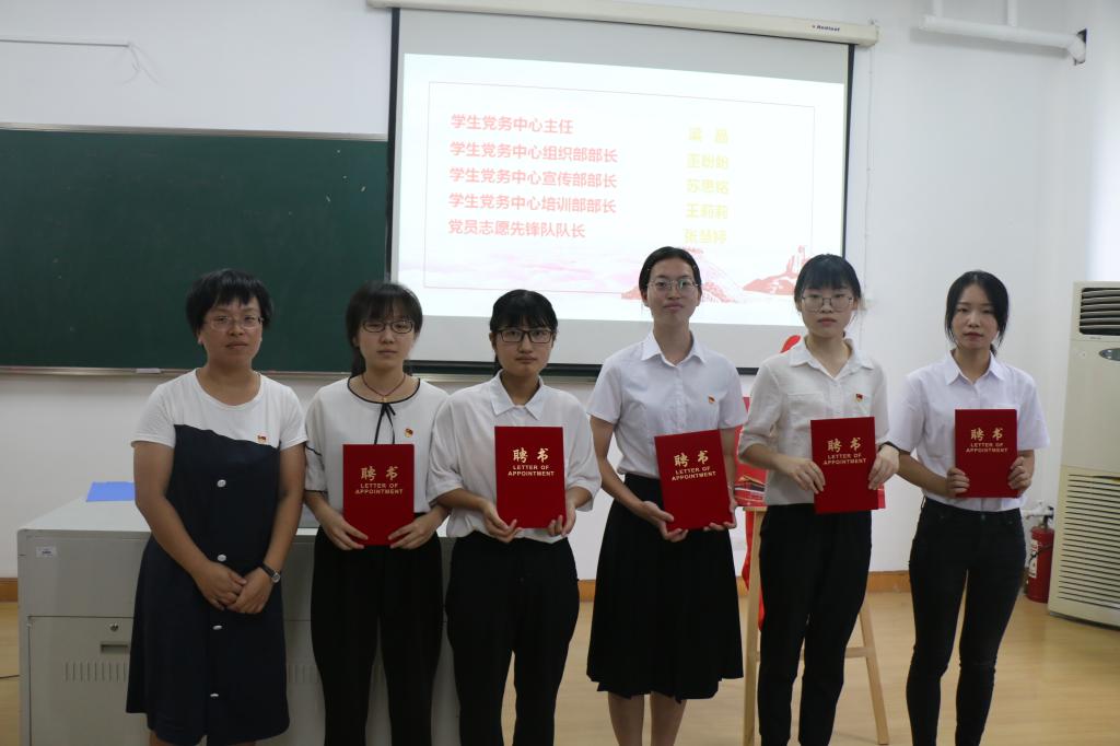 7月6日上午, 快猫 学生党务中心成立仪式在7C302举行。快猫 党委书记陈慧、党委副书记涂艳玲、各学生党支部书记及学生党员、入党积极分子代表参会。