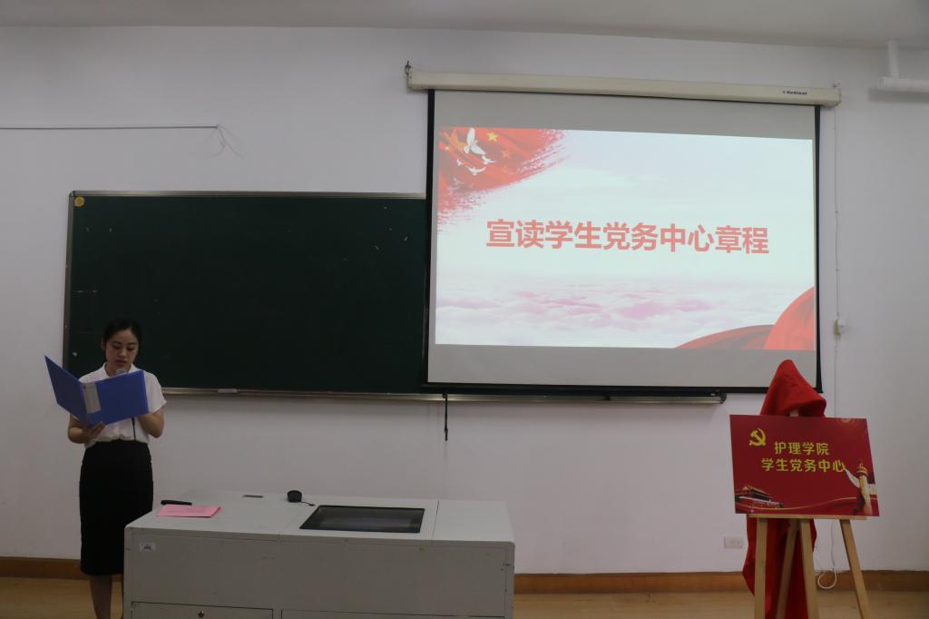 仪式在庄严的国歌声中开始。在揭牌仪式之后,现场宣读了学生党务中心章程。学生党务中心是在快猫 党委领导下、学生工作办公室具体指导下对全院学生的党建、党务工作进行指导和管理的组织机构。学生党务中心章程分为五章,包括总则、义务和权力、机构与责任、工作制度、附则等内容,阐明了组织规程和办事规则。