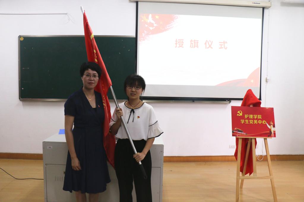 仪式上,涂艳玲副书记为第一届学生党务中心干部颁发聘书,陈慧书记为党员志愿先锋队授旗。
