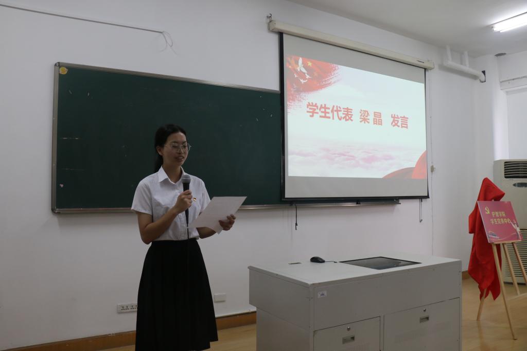 学生党务中心主任梁晶代表第一届学生党务中心干部成员发言,她表示做好新时期的学生党务工作者,使命光荣,责任重大,所有成员将以开拓,团结,奉献,创新的“开荒牛的精神”自勉,勤于学习,自觉锤炼,全心全意为广大师生服务。