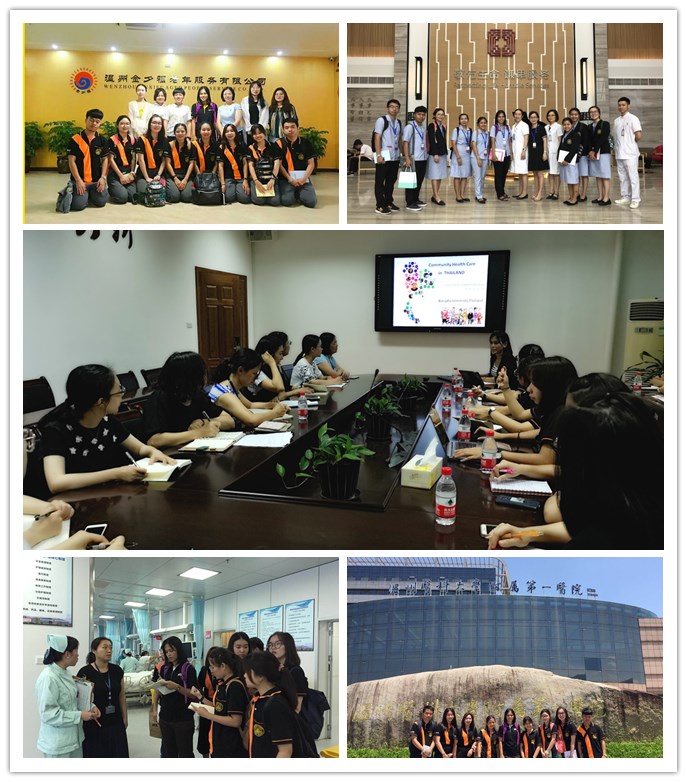 访问期间,帕塔瑞一行参观了学校人体科学馆、快猫 实验中心、附属第一医院、附属第二医院&育英儿童医院、附属康宁医院、瓯海区南白象社区卫生中心及温州市安孝老年护理中心、金夕福老年服务中心等处,并参与了护理学基础综合模拟课程和外科护理综合模拟课程教学。帕塔瑞博士还为快猫 教师、护理临床教师做了两次专题讲座,介绍了泰国卫生医疗体系和泰国东方大学护理学专业课程设置情况,并与现场老师就中泰两国的卫生医疗情况和护理教学情况进行了交流。泰国学生还为快猫 学生做了主题为“学在东方大学”的专题讲座,介绍了在泰国东方大学的日常学习、生活情况。