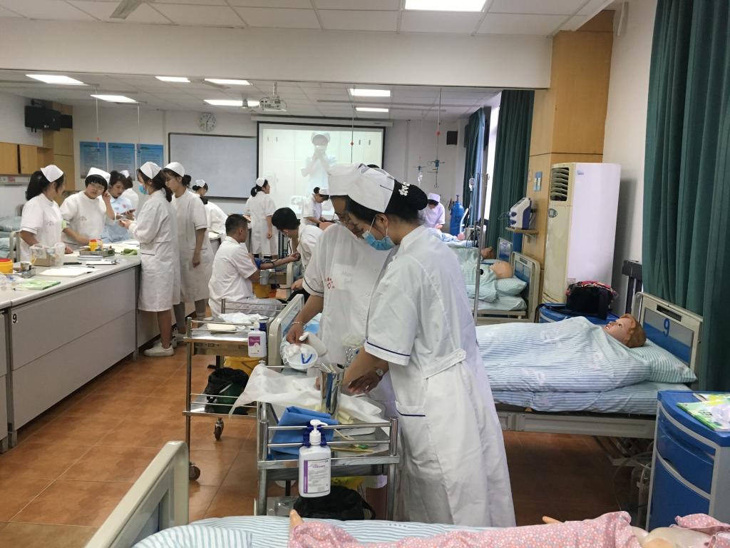 综合理论考核内容涉及《内科护理学》《外科护理学》《妇产科护理学》《儿科护理学》《急危重症护理学》《护理学基础》等6门课程。综合理论考核未通过者需参加补考,在护生通过理论考试的基础上,给予操作考核;对于实习前操作考核不合格的同学,需自行训练,再申请补考。对于综合理论考试和操作考核未过的同学,延迟毕业实习进点。护理操作的准入考核根据各实习医院进点时间将在6月下旬和7月初进行,同时为提高以考促学的效果,快猫 实验中心从今年3月开始利用每个周末安排学生进行实验室开放练习。