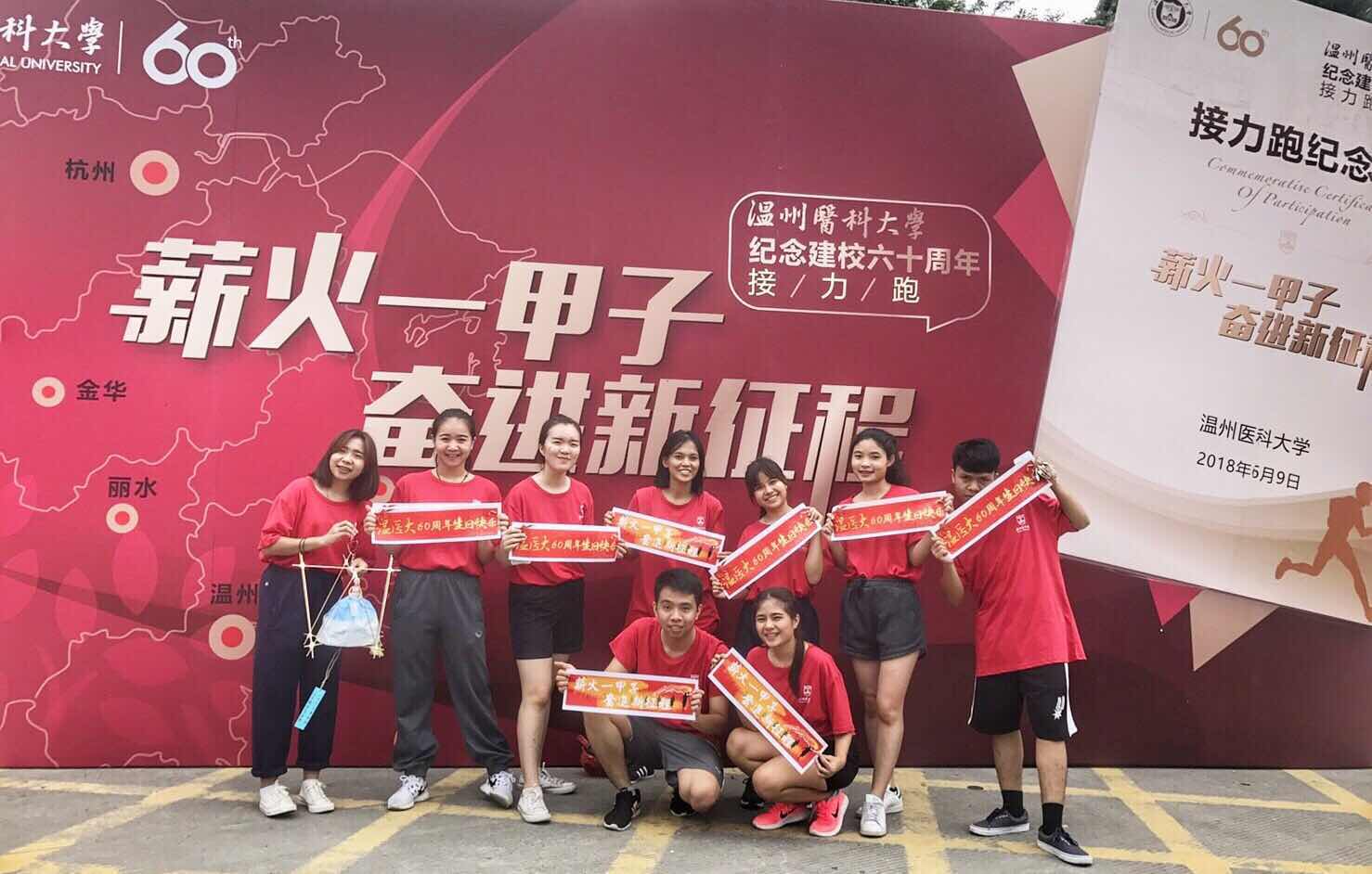 白衣天使齐接力,南丁格尔精神传;一交一接展风采,共庆建校六十年。6月9日上午,快猫 201名师生代表和9位来自泰国东方大学快猫 的师生满怀激情,参加了纪念建校60周年接力跑,表达对学校甲子华诞的深深祝福。