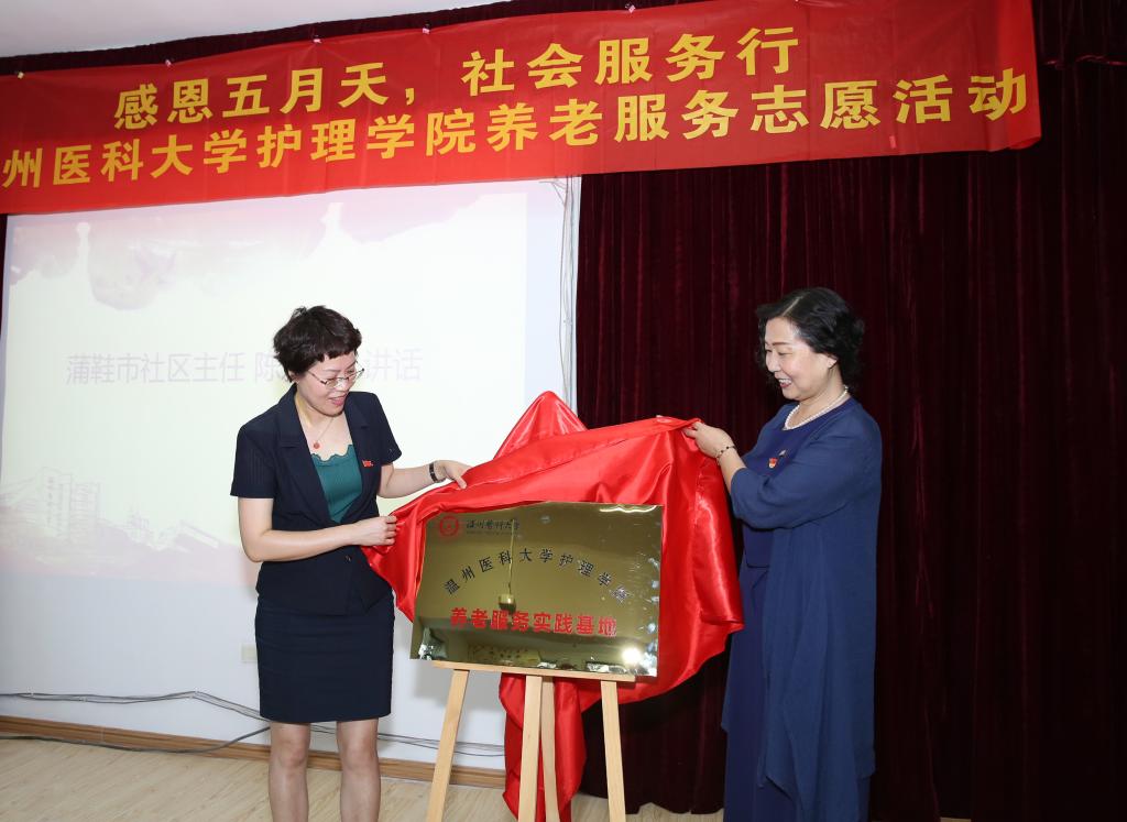 5月13日下午,在母亲节来临之际,快猫 首个“社区养老护理志愿服务实践基地”在蒲鞋市社区正式揭牌,快猫 党委陈慧书记、涂艳玲副书记,蒲鞋市社区陈爱飞主任出席揭牌仪式。快猫 教工第二党支部全体党员教师,快猫 附属第二医院的护士长一行以及快猫 白鸽青年志愿者协会的二十余名志愿者参加仪式,并联合开展了以“感恩五月天,社会服务行”为主题的养老服务志愿活动。