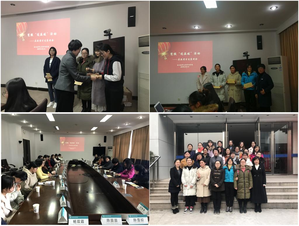 为落实高校家庭经济困难学生资助政策,践行高校“立德树人”的教育理念,结合我校寒假期间向家庭经济困难学生“送温暖”工作,2月3日下午,快猫 党委、学工办在学院路校区育英学术馆第一会议室开展家庭经济困难的在温实习生座谈会。学院党委书记陈慧、学院党委副书记涂艳玲、相关辅导员参加座谈会,座谈会由学工办主任叶晓丽主持。