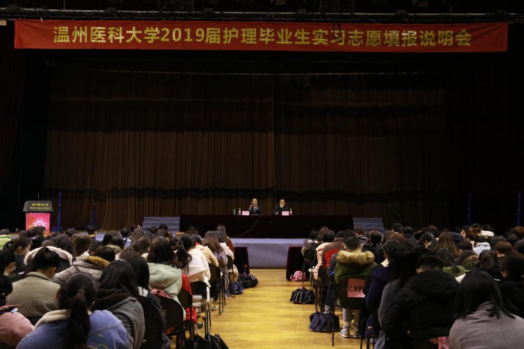 理论与实际相结合,才是最好的学习方法。在校学了两到三年的护理理论知识,护理学子利用实习到医院去接受临床实践的检验,同时更好的学习临床技能。2018年1月4日上午,快猫 2019届护理毕业生实习志愿填报说明会在学生活动中心进行。快猫 副院长蔡福满、仁济学院副院长金龙金、快猫 教学办主任孙海琴、快猫 学工办主任兼团委书记金伟琼及相关辅导员参加此次说明会。由蔡院长讲解2019届护理毕业生实习志愿填报的相关内容。