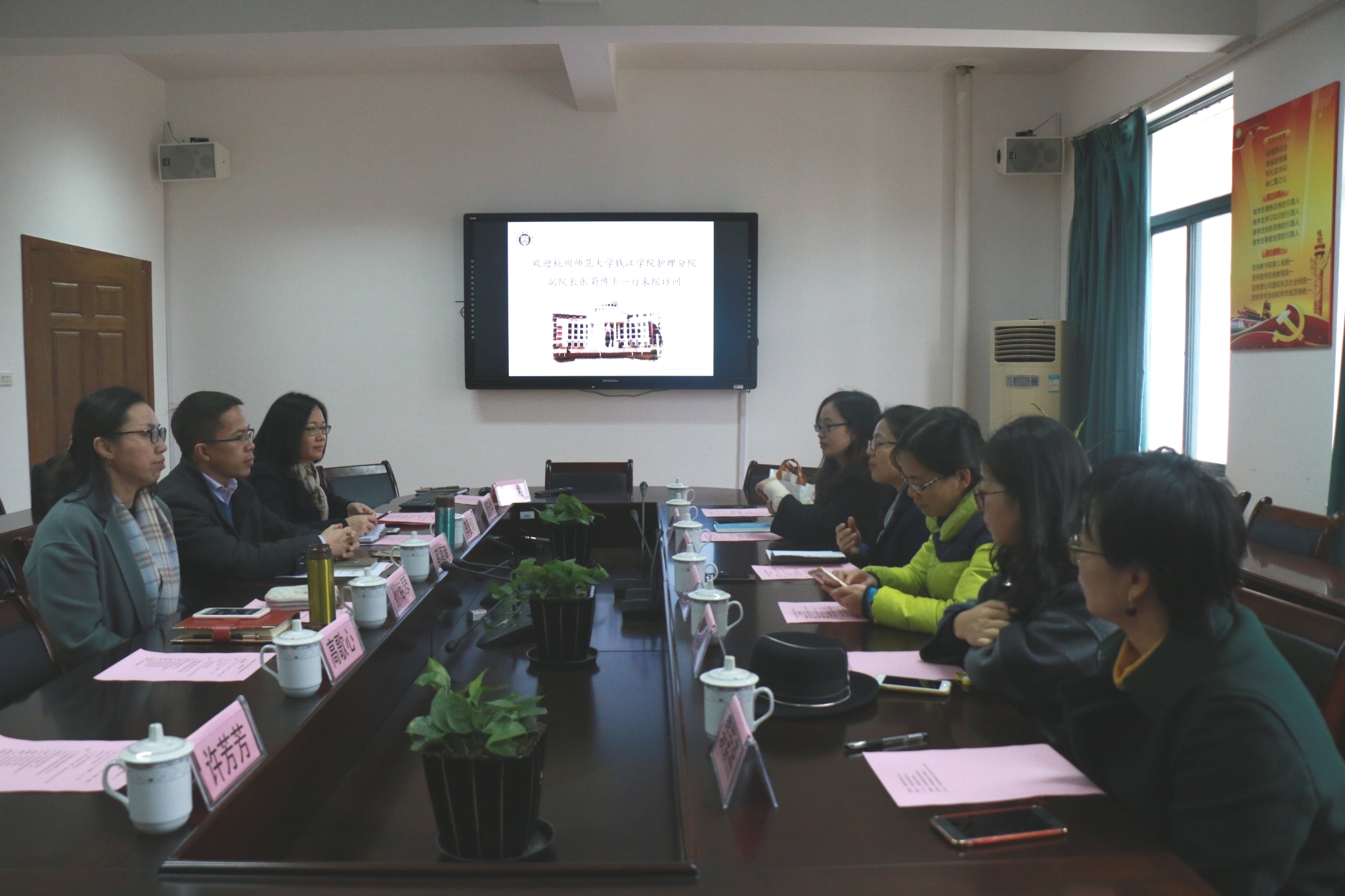 12月13日,杭州师范大学钱江学院护理分院副院长张菊一行来访快猫 ,快猫 副院长蔡福满和相关教研室、教学办、实验室老师在会议室进行了会面交流。