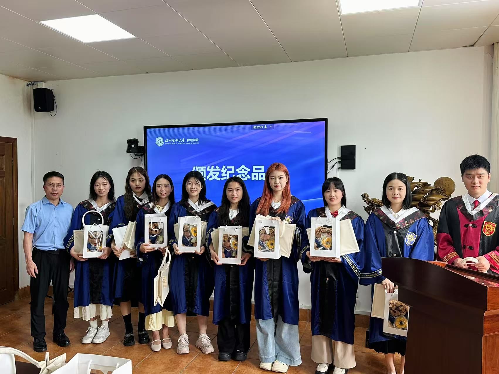 活动最后,学院领导亲手为每位毕业生送上精心准备的毕业纪念品,并送上真挚祝福。现场洋溢着温馨感人的氛围,师生们依依话别,共同期许美好未来。