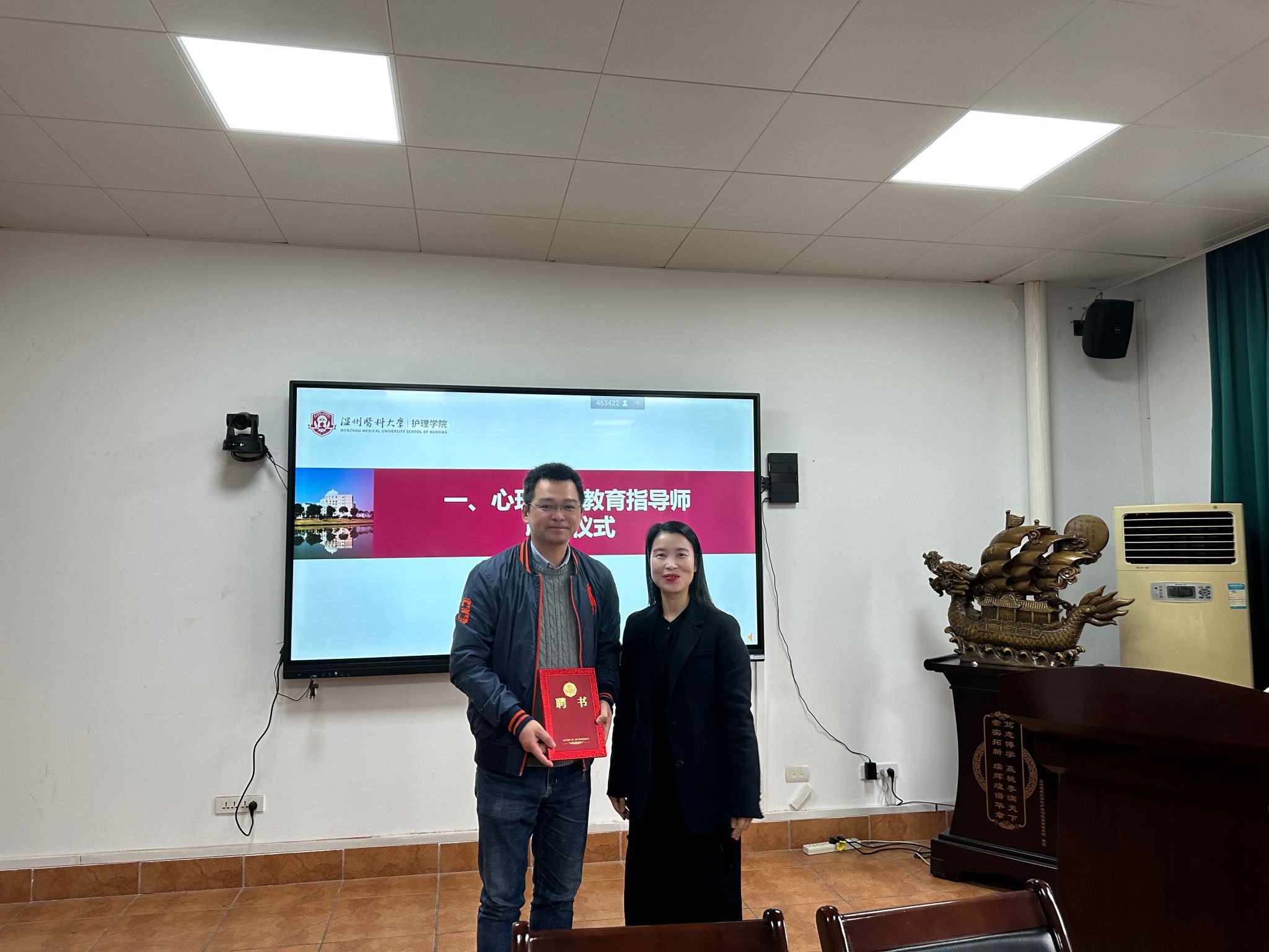 学院党委书记王敏为陈浩然医生颁发心理健康教育指导师聘书,陈医生针对学院近期发生的学生危机情况,从专业角度进行剖析,现场进行答疑和指导,并指出下一步工作重点。