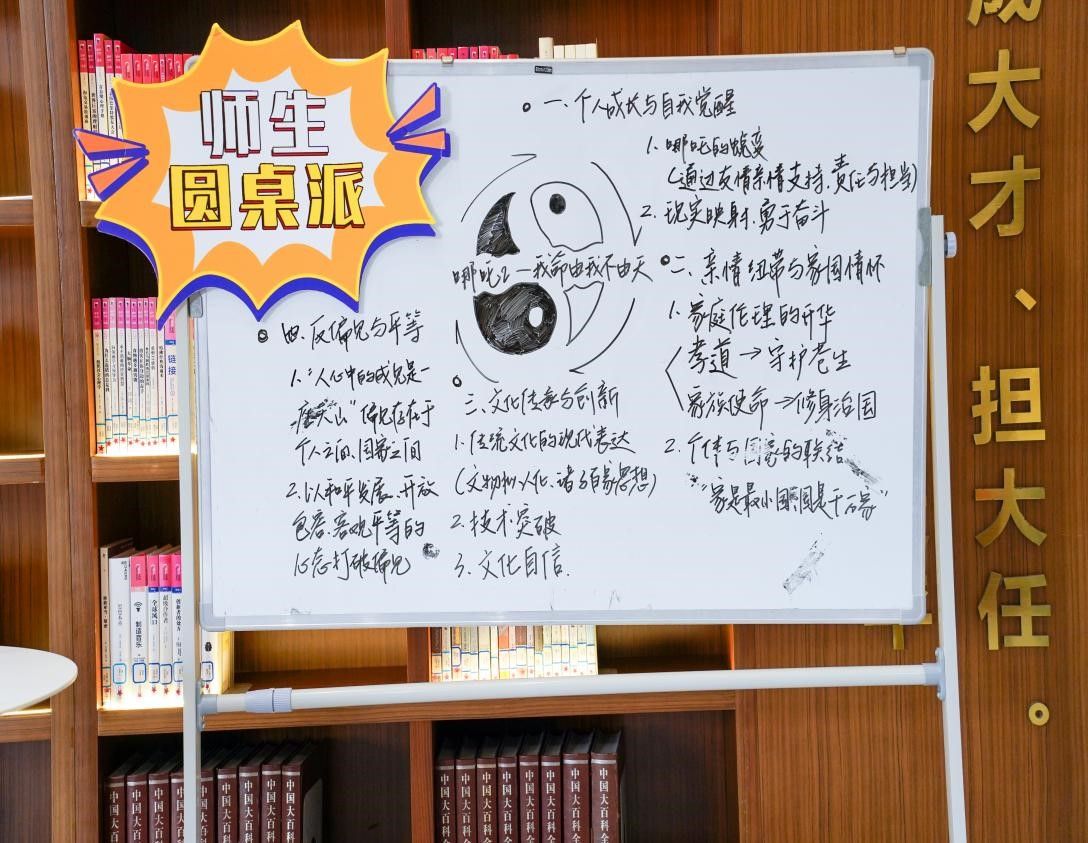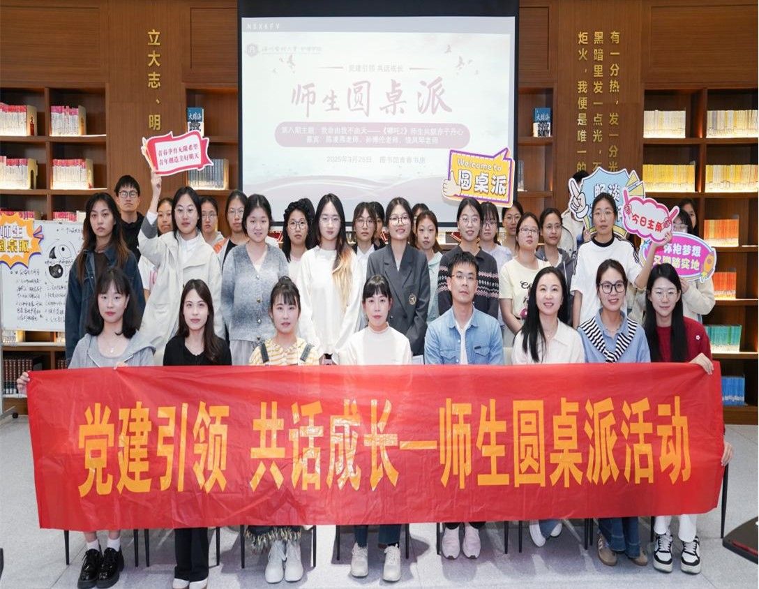 第八期师生圆桌派于3月25日下午在图书馆青春书房成功举办,本次活动以“我命由我不由天《哪吒2》师生共叙赤子丹心”为主题,通过专业教师、优秀学子结合自身经历分享在观看《哪吒2》后获得的感悟和见解,以光影为媒,将电影中‘逆天改命’的励志内核与现实教育相结合,进一步激发了师生们对理想信念的追求与思考。本次活动嘉宾为快猫 新进博士陈凌燕老师、孙博伦老师、饶凤琴老师以及学生代表陈彬艳、周婧轶、楼雪纯、徐莹莹同学,观众由学生党员、入党积极分子代表及线上2024级大一学生组成。