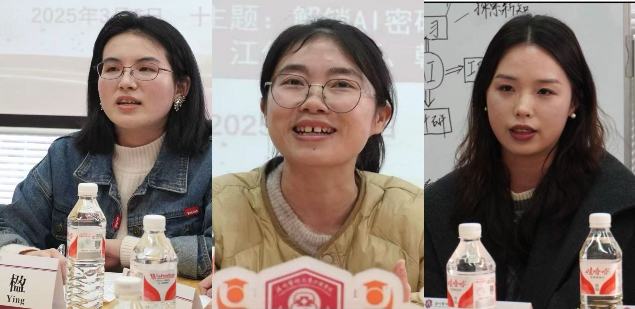 学生团委副书记孙夕雯同学分享自己运用AI特性进行智能分析确保分类和总结的准确性,另外利用AI聊天功能提供心理安慰与情感共鸣,帮助缓解学业压力。葛杨艳同学也表示在学生干部工作中,AI大大帮助提升了任务管理、活动组织与文案优化效率,我们应积极拥抱AI,同时坚守核心价值观与道德底线。朱嘉鹏同学则讲述了自己从依赖AI到反思、运用AI的过程,多进行学术思考,对AI提供的信息进行筛选、吸收、内化。研究生学长周敬皓简要描述了AI在处理数据时可以独立操作,提升科研处理效率。陈盛樟学长则是分享了自己不同科研经历中借助AI进行辅助实验设计和数据分析、代码修改等工作,正确地使用AI也要求我们结合批判性思维和信息收集能力。