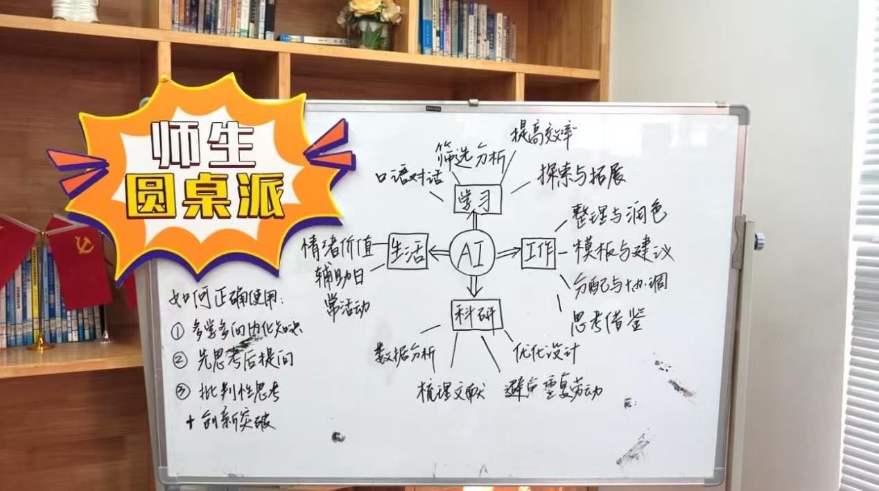 第七期师生圆桌派于3月6日下午在十号楼我家书房成功举办,本次活动以“解锁AI密码,师生赋能高效学习力”为主题,通过专业教师、优秀学子分享运用AI的相关经验,共同探讨人工智能与教育深度融合的创新路径,探索AI如何重构个性化学习生态、推动教育数字化转型。本次活动嘉宾为快猫 专业老师江仕爽老师、韩楹老师、辅导员李佳佳老师以及学生代表孙夕雯、葛杨艳、朱嘉鹏、周敬皓和陈盛樟同学,参会的还有学生党员、入党积极分子代表及线上2024级大一新生组成。