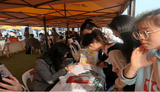 宣讲结束后,快猫 招生团队迅速转至校园招聘会现场,开展考研咨询活动。学校展位前人头攒动,不少学生带着对报考流程、专业方向、专业前景等方面的疑问前来咨询。老师们热情接待,逐一耐心解答学生们对考研的每一个问题。