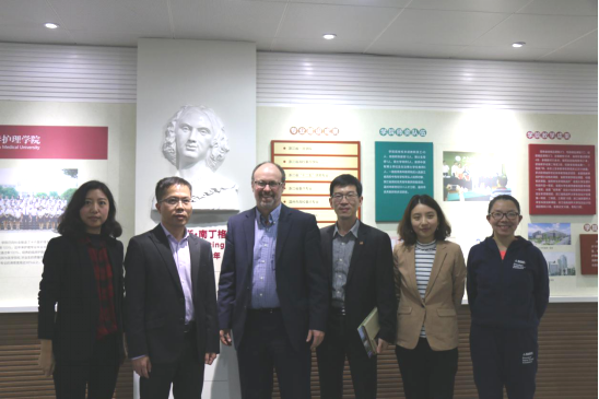 会上,蔡福满向大卫·范德格一行介绍了快猫 教学管理、护理课程、国际合作交流等方面情况,希望促进两校在研究生教育方面的深入交流与合作。精神医学学院王莉博士就该学院教学设施、教学课程和方向等作了简要介绍。大卫·范德格校长则介绍了查塔姆大学校舍、专业设置、教育理念等情况。会议还就未来两校计划合作的项目进行了深入的探讨与交流。