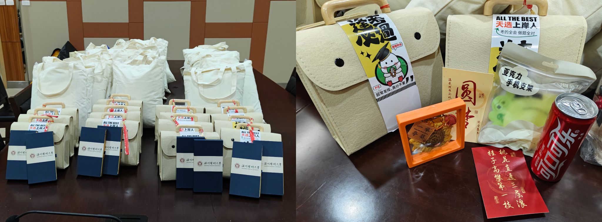 在考研冲刺的关键阶段,为深入了解快猫 考研学子的备考情况,送上学院的温暖关怀。近日,快猫 2025届辅导员张迪、李飞跃和张颖走访了温州市区实习点,为实习期间努力备考的同学们送去了精心准备的考研大礼包,每一件礼品都蕴含着美好寓意。象征着“一举夺魁”的针织葵花,愿同学们在考研的战场上勇夺佳绩。象征着“青松上岸”的手机支架,希望能够缓解同学们备考时的疲惫,保持最佳状态。同时,贺卡上写满了考研祝福语,愿同学们在考研的路上,每一步都坚定而有力...