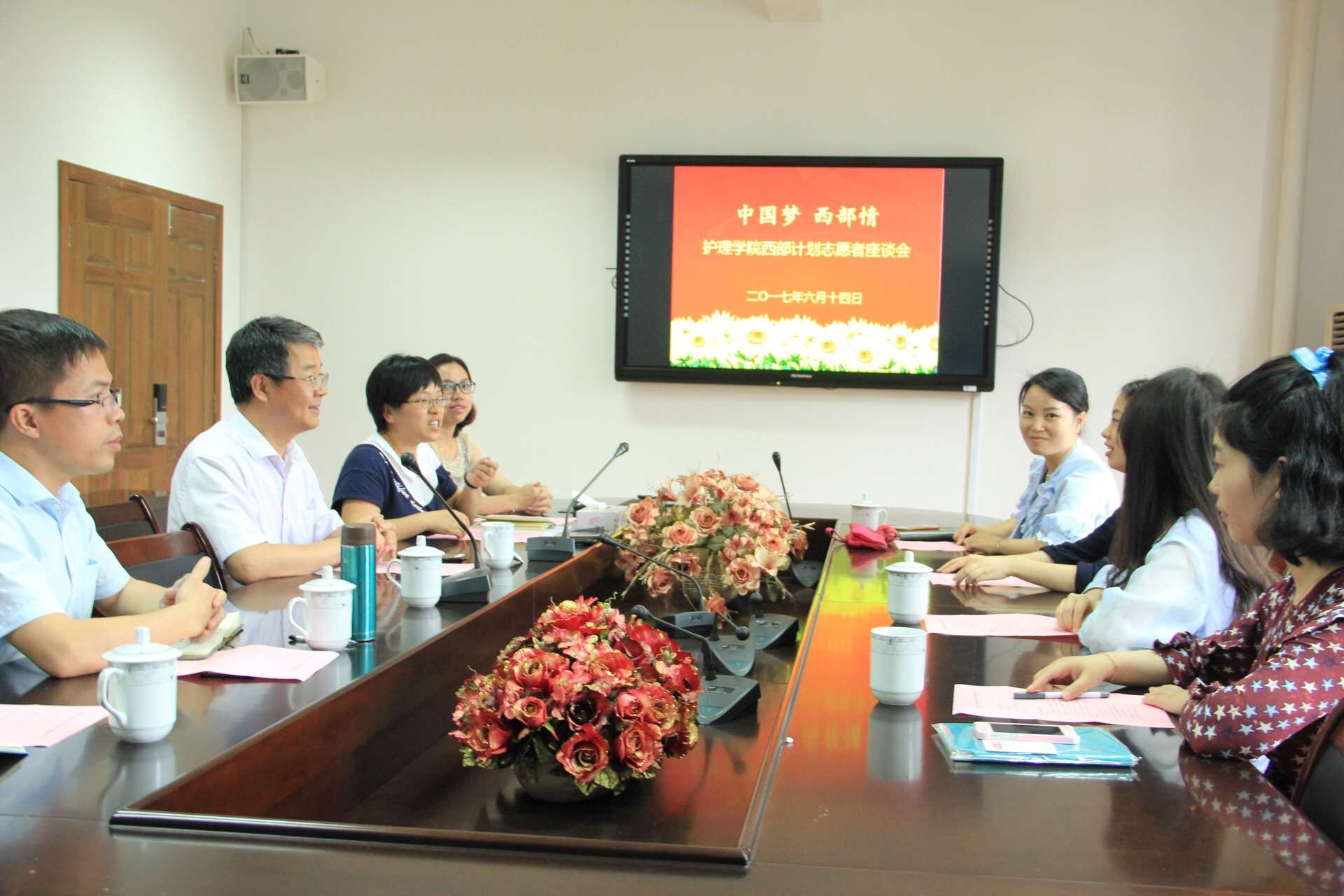 6月14日下午,快猫 在7C306室举行“中国梦 西部情”西部计划志愿者座谈会。院长卢中秋讲话,副院长蔡福满、党委副书记涂艳玲等出席座谈会。大家齐聚一起欢送学院第二位西部志愿者——季文静前往四川服务。