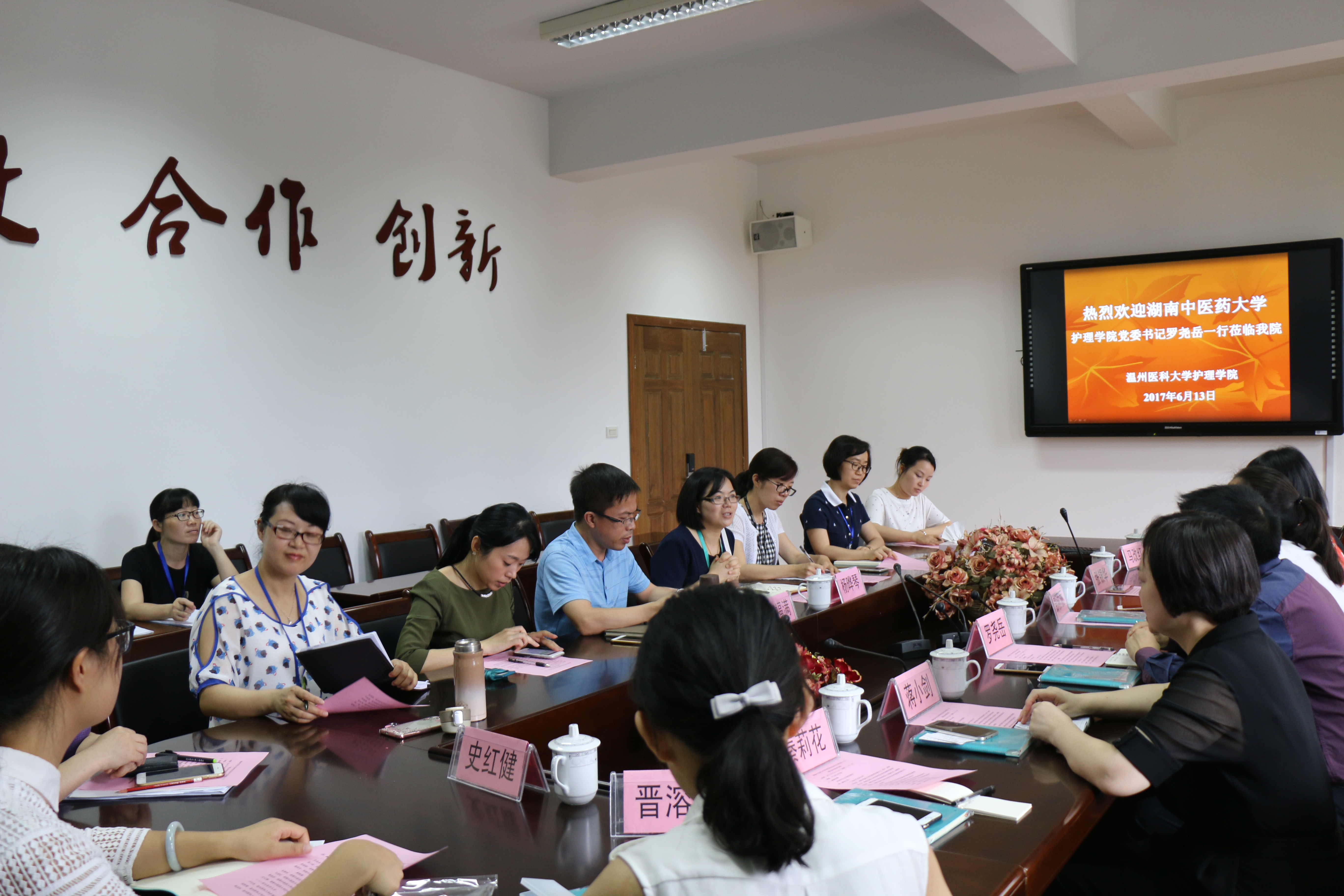 罗尧岳一行参观了快猫 走廊文化、实验室。随后,在7C306会议室与副院长蔡福满、杨晔琴及学院办,学工办,各教研室、实验室老师,就护理学专业实验室建设、课程建设、教学技能、学生工作等方面进行了深入的交流。