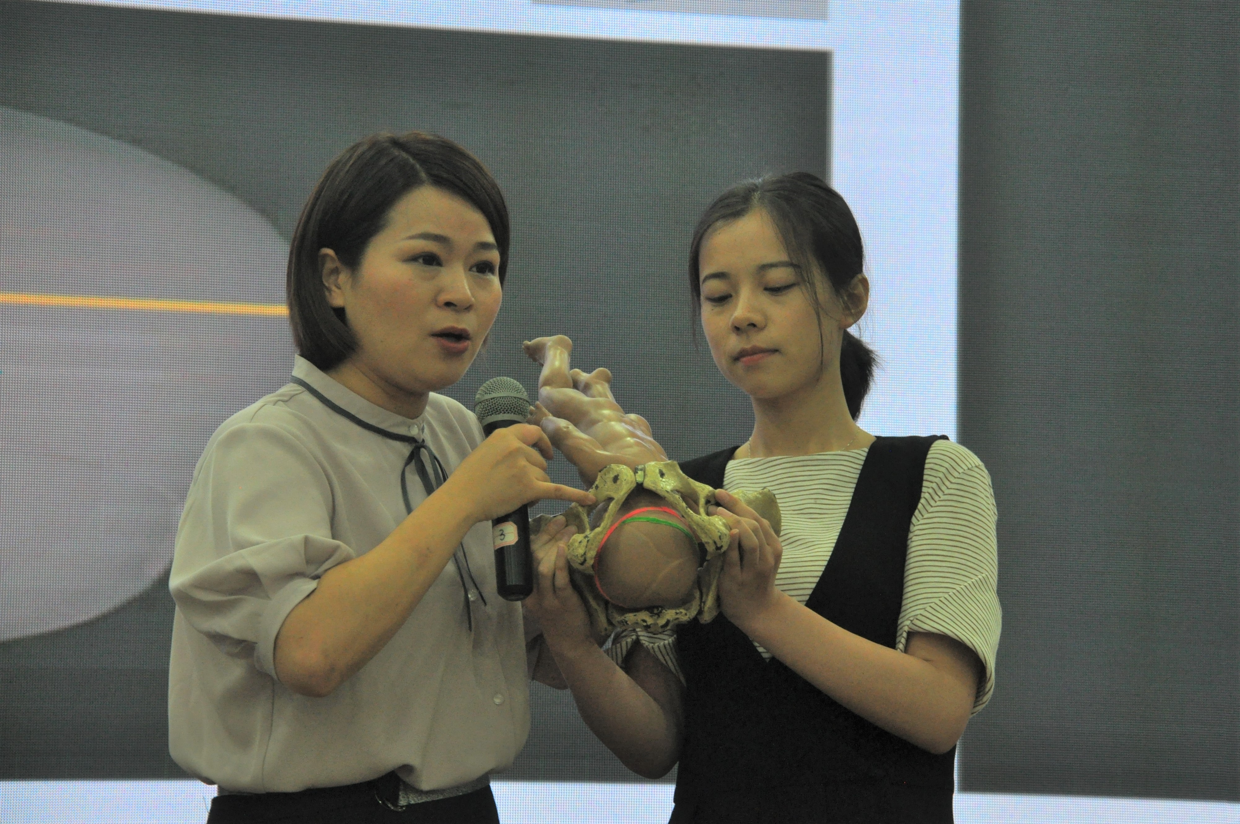 比赛中,梁世耀老师主讲高质量心肺复苏,内容详细,思路清晰,即使第一个上台,仍是淡定自如。她在讲解按压频率时,结合音乐来阐述如何控制合适的按压频率,令现场评委和师生眼前一亮。许芳芳老师则主讲分娩机制和体位管理,她用一段动画引入授课内容,详细讲述了分娩机制的七个步骤。讲解中,她结合体位管理新进展,并用模型进行示范,还请学生上台实践,清晰生动地展示了课堂教学内容。她自信、落落大方的讲解,对教学手段的灵活运用及灵活多变的应对,获得了现场评委和师生的高度认可。