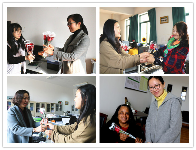 3月8日,学院开展送鲜花送祝福活动,学院领导在全院教职工大会上祝福女教职工节日快乐。此外,每人一份的纪念品,也让老师们感到格外温馨。