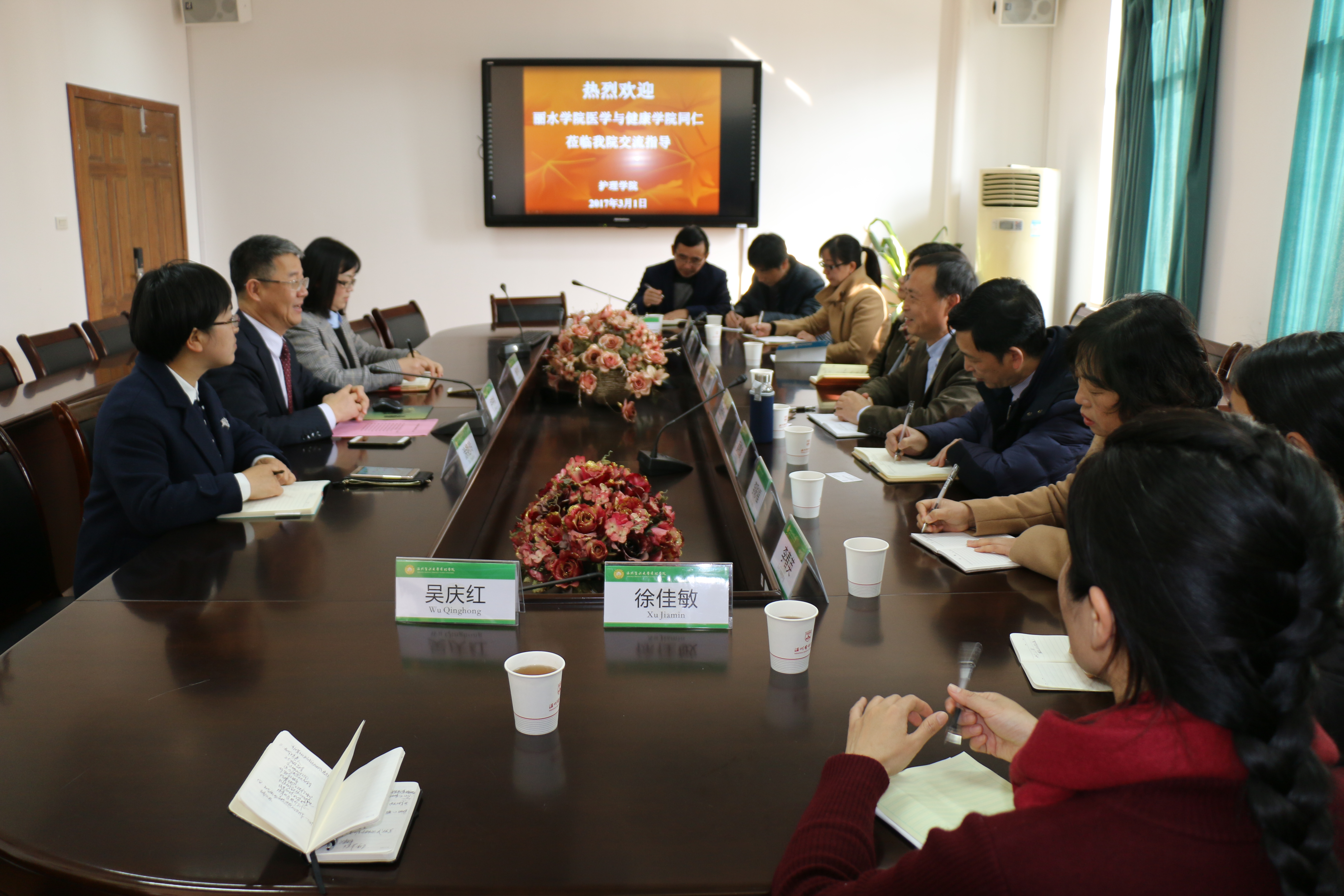 3月1日,丽水学院医学与健康学院党委书记、常务副院长王伟杰,副院长吴松泉等一行11人来访快猫 。快猫 院长卢中秋、副院长杨晔琴、党委副书记涂艳玲等热情接待了来访客人。