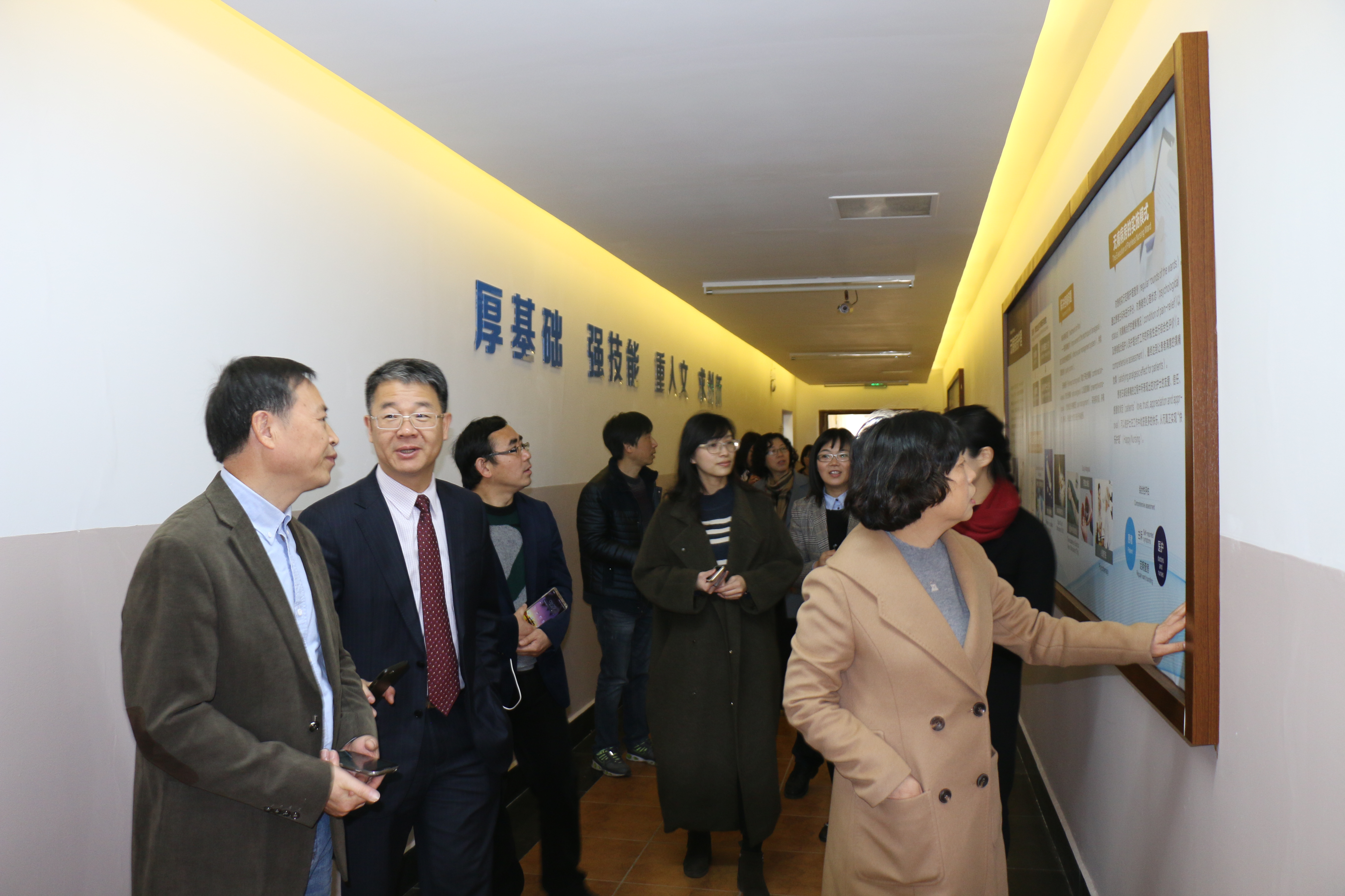 王伟杰一行在卢中秋、杨晔琴、涂艳玲等的陪同下,参观了学院文化长廊和实验室等处。随后,在7C306会议室召开的座谈会上,卢中秋代表学院热情欢迎客人们的到来,并向客人们介绍了学校和学院情况,重点介绍了学院护理学专业认证工作情况。王伟杰一行和快猫 与会的领导及各办公室、教研室老师进行了深入的交流。