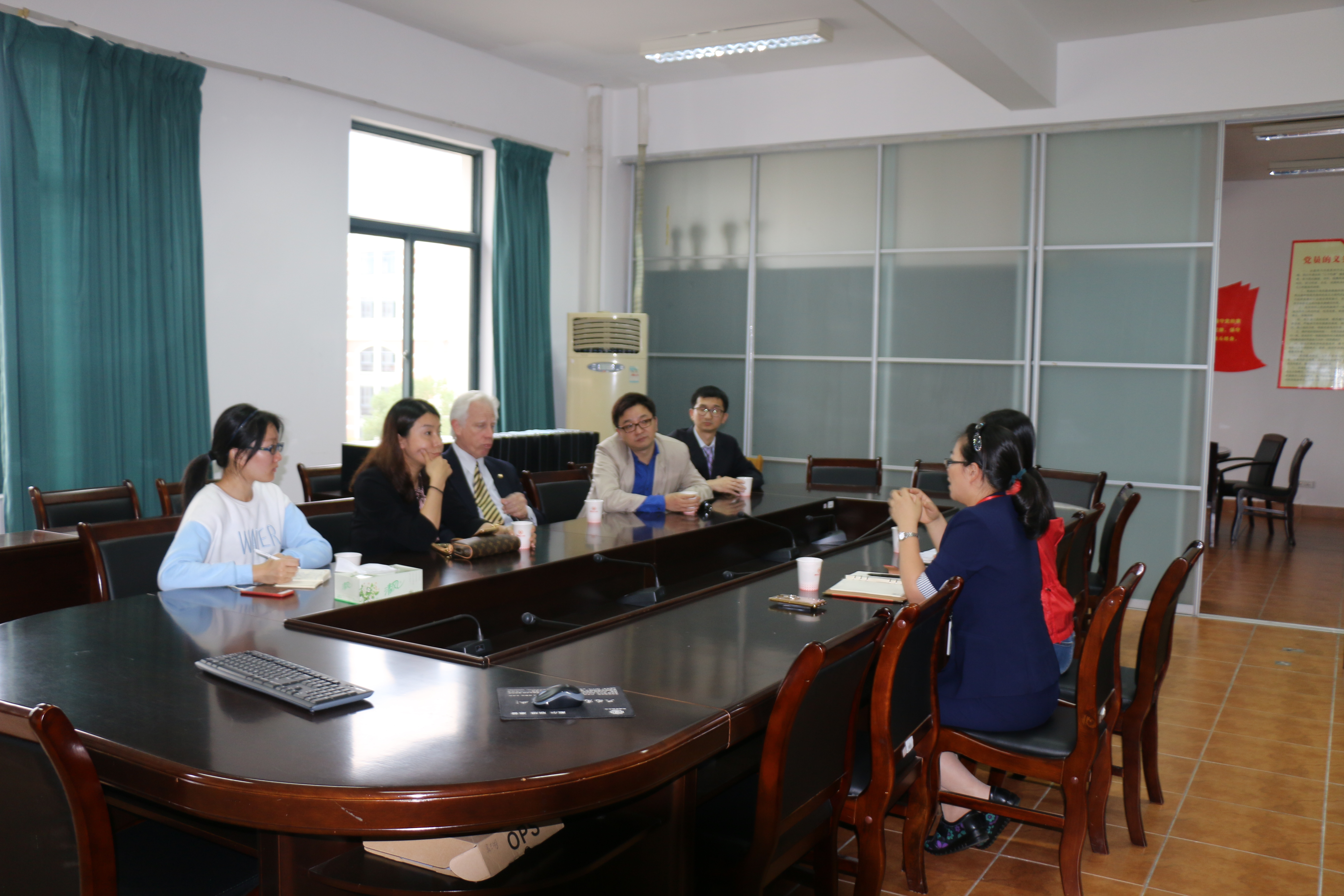 11月7日,美国麦当娜大学教务长兼学术副校长Lewis Walker先生一行来快猫 访问,副院长杨晔琴及教学办相关老师在7C306会议室接待了来访的客人。