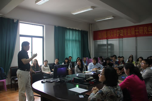 之后,张博论教授还向老师和学生们演示了如何利用excel软件实现护理信息系统的编程,期间大家纷纷踊跃提问,学习兴趣浓厚,会场互动氛围良好。张博论教授的讲座赢得了老师和同学们的一致好评。