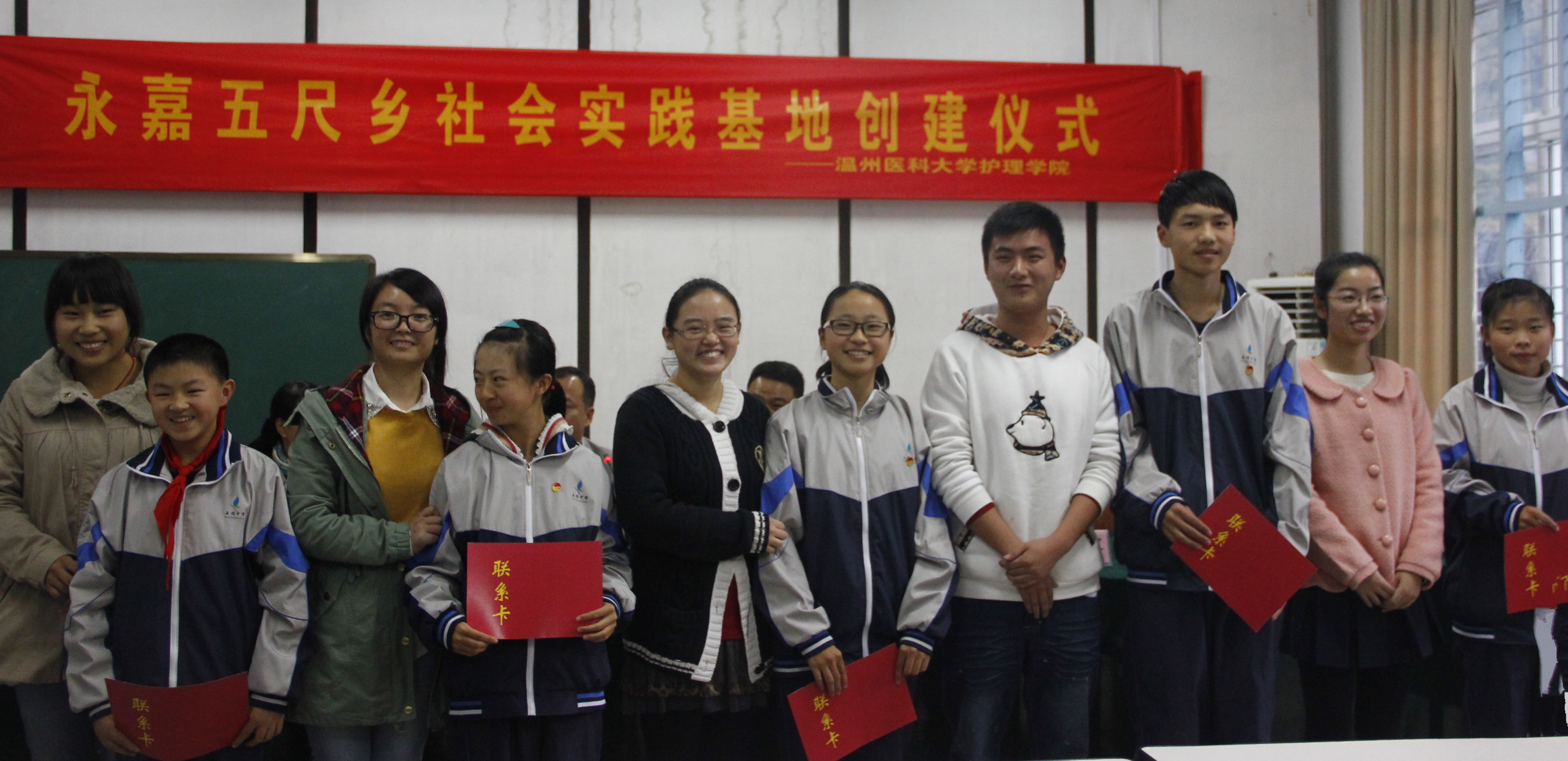 2013年11月20日,快猫 永嘉五尺社区社会实践基地创建暨牵手贫困山区青少年结对仪式在永嘉五尺中学隆重举行。温医学子要用自己的热情奉献与爱心浇灌永嘉山区的爱之花。