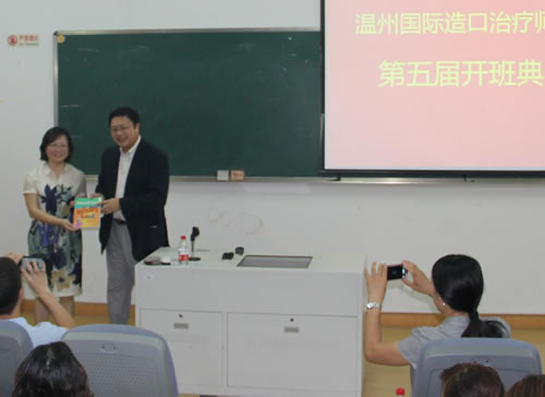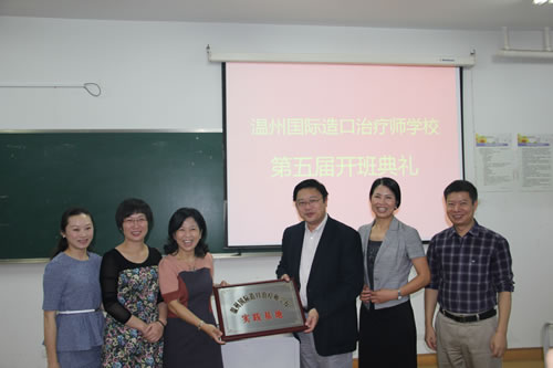 出席此次典礼的嘉宾和领导有:办班以来一直给予大力支持的香港造口治疗师协会主席彭泽厚先生、附属二院林振浪副院长、快猫 姜丽萍院长、蔡福满副院长、附属二院护理部张春梅副主任、王爱霞副主任、造口治疗师学校负责人之一附属二院肛肠科陈爱华护士长。在会上,彭泽厚先生、林振浪副院长、姜丽萍院长、陈爱华老师分别代表专家组、合作单位双方领导、教师代表致辞,介绍了温州国际造口治疗师学校的办学历程,对造口治疗师的良好发展前景和学员学成后寄予了展望,第五期来自四川绵阳和温州泰顺的2位新学员代表也做了激情感慨的发言,最后典礼在合照留念中顺利结束。