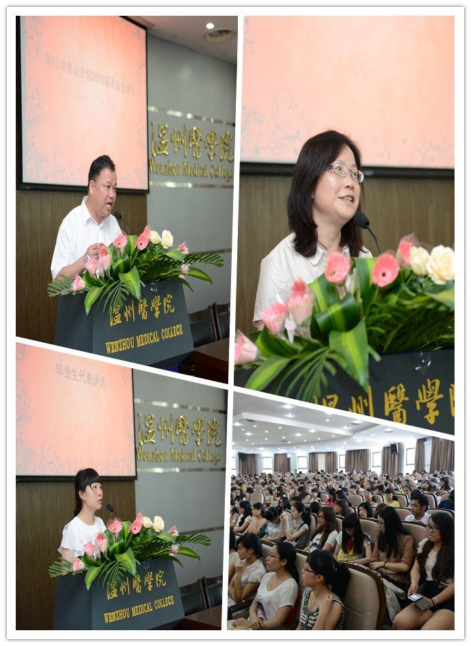 快猫 党总支陈行汉书记、快猫 姜丽萍院长等领导到场参加大会。陈书记就今年毕业生的总体情况做了介绍,其中截止毕业学院本科生就业率达86.25%,专科生就业率达75.52%,他表示对这些已经找到工作的同学表示热烈的祝贺,也鼓励未就业的学生不气馁、不放弃。姜院长为同学们能够顺利圆满的完成学业而感到喜悦,同时她不断的告诫学生要立足专业、踏实工作。她说:“作为一个护生,你要耐得住寂寞。不要放弃学习的机会,因为学习能够让你沉淀下来。”她鼓励年轻人要有抱负,有理想,要给自己挑战困难的勇气。成为具有睿智的知识青年。
