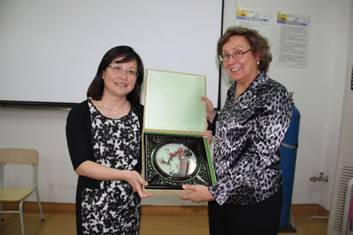 Diane Heliker教授多年来从事老年护理的研究,讲座围绕老年护理中长期照护的安全问题,介绍美国不同形式的老年机构养老模式,强调系统评估老年人的重要性,探讨如何针对不同文化背景的老年人进行全面的有针对性的个性化的整体照护。参与讲座的老师、学生也针对讲座内容与各自感兴趣的话题与Diane教授进行了愉快的交流。会后,姜丽萍院长代表快猫 赠送礼物以表示对Diane教授的感谢。