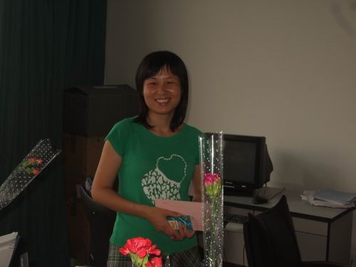 傍晚,白鸽志愿者们匆匆赶往办公室的途中,随处可见的“教师节快乐”的问候语,渲染着浓厚的尊师重教的氛围。白鸽志愿者为老师送上了最特别的礼物——亲手制作的贺卡和鲜花。这个意外的惊喜,让老师们个个喜笑颜开。一句句谢谢和一张张最灿烂的笑脸定格在“教师节”这一天的相片中。小小的礼物,却诠释着学生对老师深深的情意。而老师们那美丽的微笑则是学生最喜闻乐见的。恩师们的笑颜永远镌刻在了你我的心中。