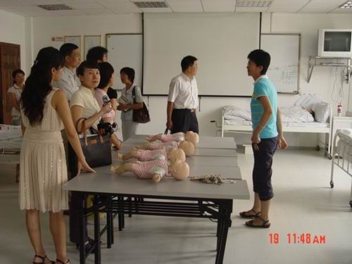 交流和座谈会结束后,徐瑞金书记和曹梅娟副院长一行在学院实验室负责人姜文莉老师的陪同下,先后参观了快猫 的护理学基础实验室、健康评估实验室、护理示教室、综合模拟训练实验室、外科实验室和康复护理实验室。