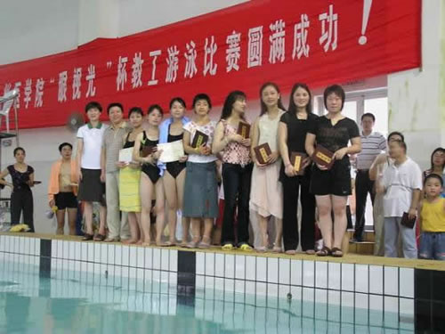 7月3日上午,在学院路校区游泳馆举办的2005“眼视光杯”教职工游泳比赛中,快猫 选手姚颖颖获得女子100米自由泳第四和女子50米蛙泳第七的可喜成绩,在男女4*50米接力赛中,快猫 代表队获得第五名。