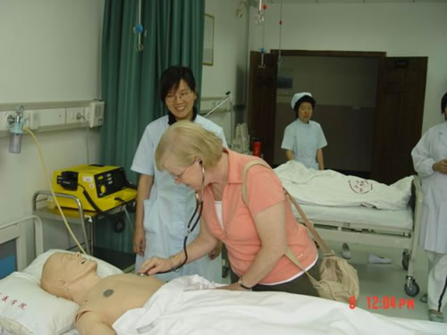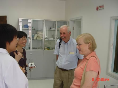 6月8日上午,温州医学院院长国际顾问拉里·克劳森(Larry Clausen)伉俪参观快猫 。在7C306会议室,快猫 副院长姜丽萍教授向客人们介绍了学院的历史沿革和发展情况。宾主双方在友好的氛围下进行交谈,就护理领域教学、科研合作,师资互访等进行初步洽谈。随后,客人们兴致勃勃地参观快猫 的实验室。在护理综合训练实验室,拉里·克劳森(Larry Clausen)伉俪饶有兴趣地拿起听诊器听SIMAN模拟人的心跳和呼吸音。参观过程中,他们对快猫 的实验条件和设备非常满意。
