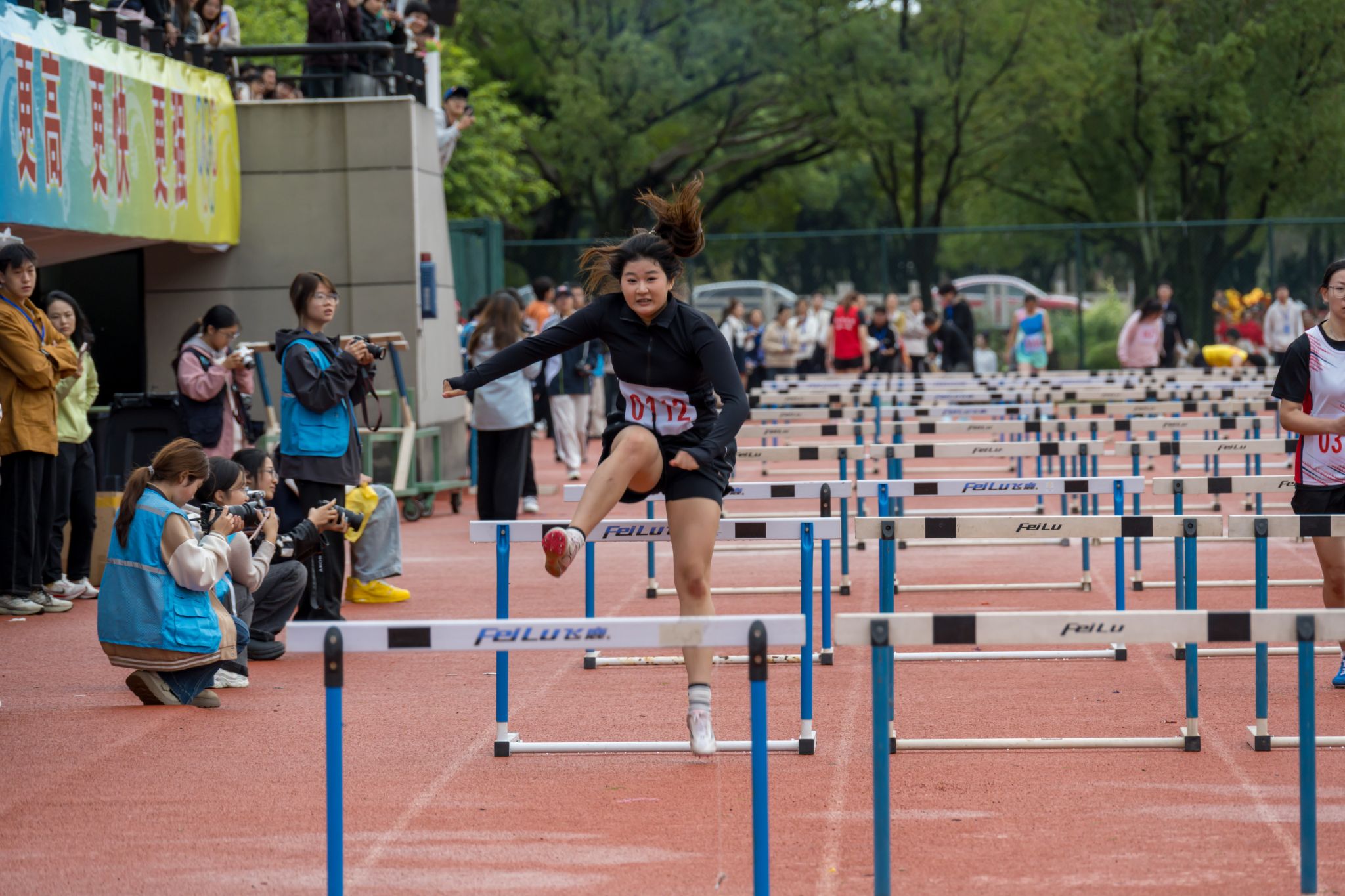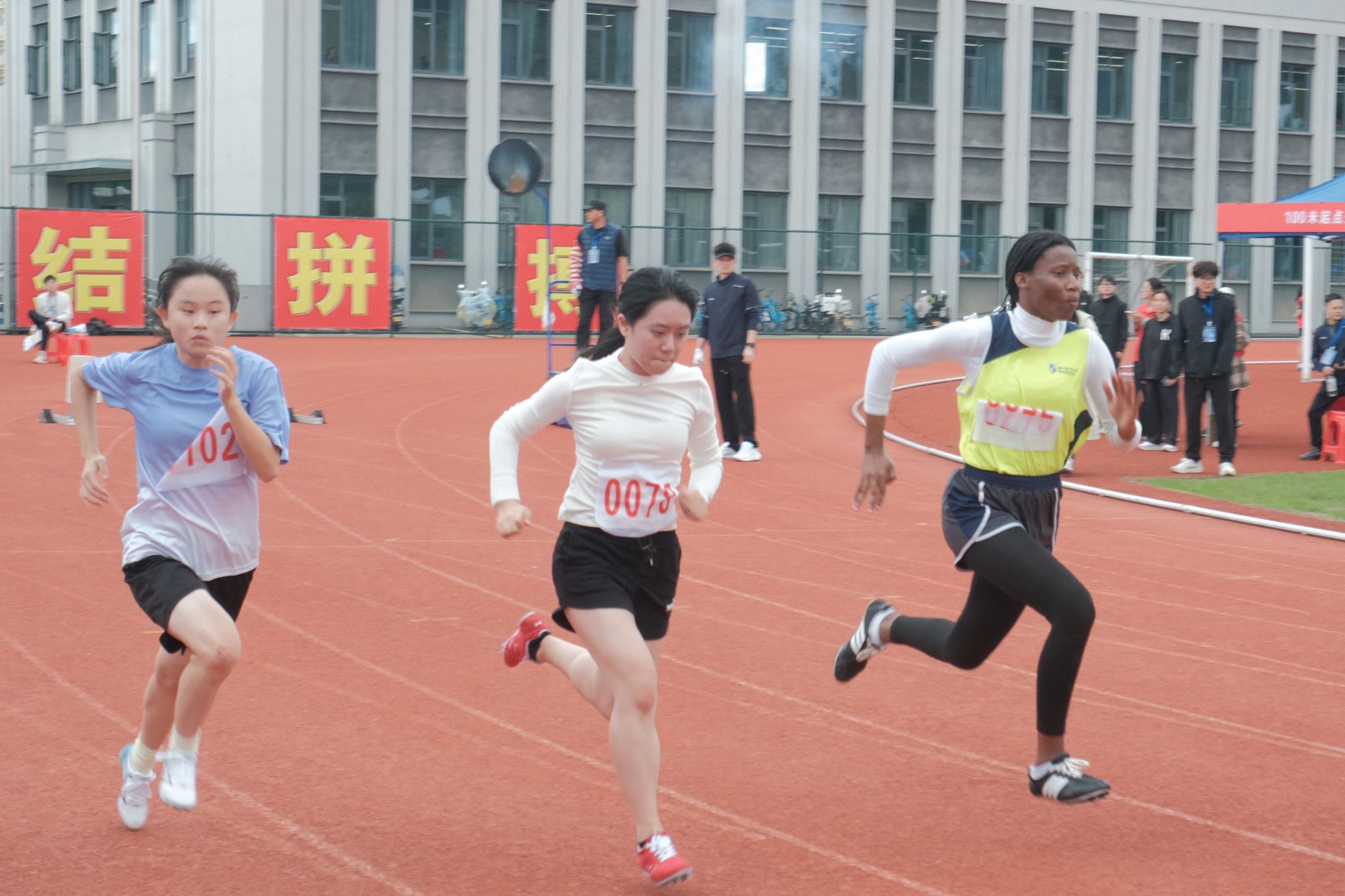 学生径赛项目同样精彩纷呈。绿茵场上,快猫 学子挥洒汗水,让激情在竞技中尽情释放,勇攀高峰。女子组王若男、石可馨、王晶熠、倪楚璇在学生女子100米栏中分别取得第二、三、六、八名;陈燊奕在学生女子100米中获得第七名。